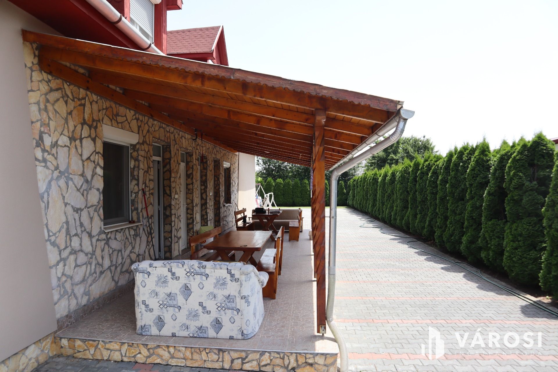 A 2004-ben épült két szintes, szigetelt tégla építésű épület hasznos alapterülete 400 m², amely egy 800 m²-es önálló parkosított telken helyezkedik el. Az ingatlan kiváló állapotban van, a földszinten két 100 m²-es apartman (egyenként 2 hálószoba, és egy nagy nappali) az emelten pedig szintén két 100 m²-es 3 szobás tágas apartman várja a pihenni váró vendégeket. Minden egységhez tartozik egy konyha, és egy zuhanyzós fürdőszoba is.