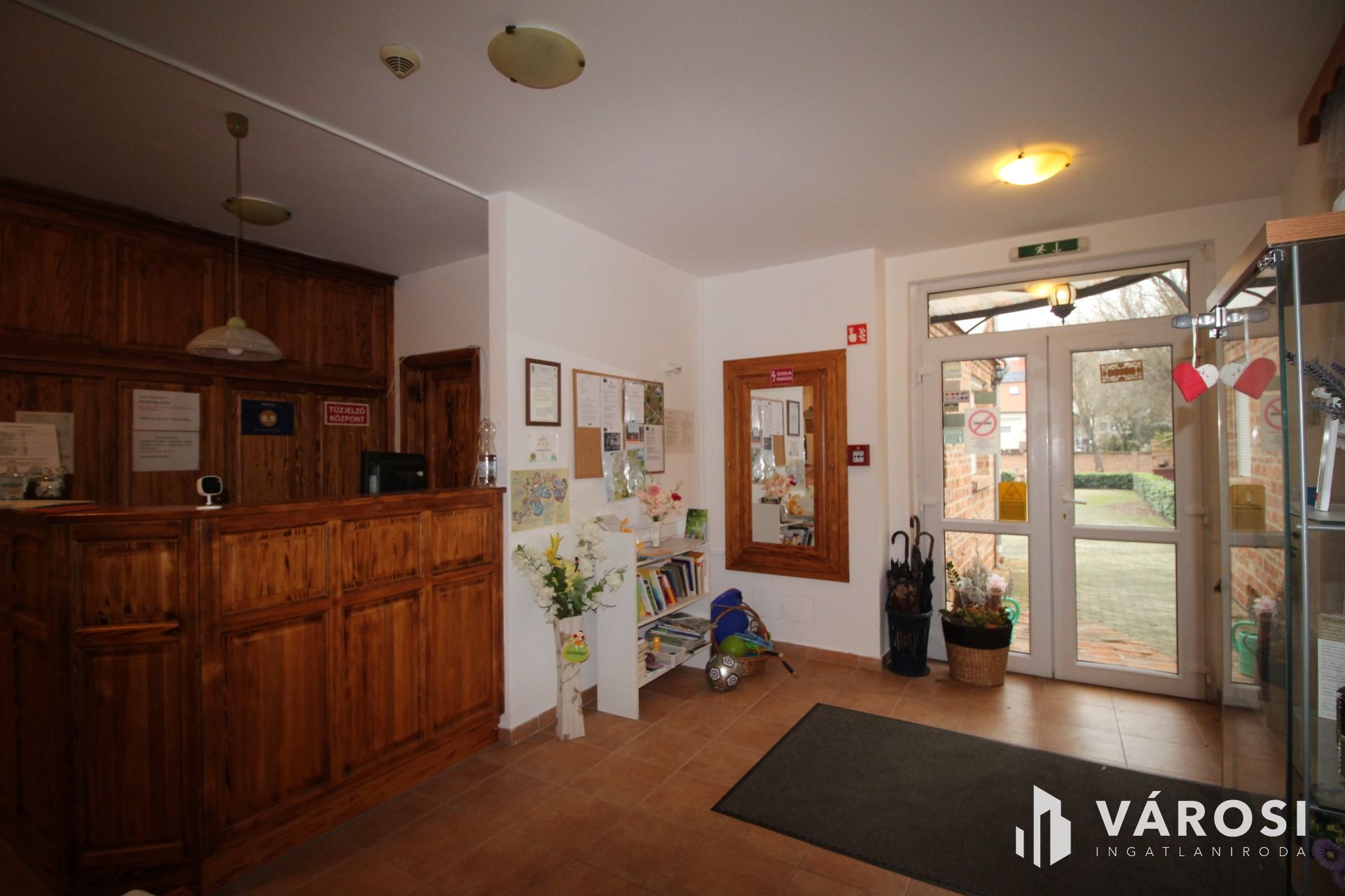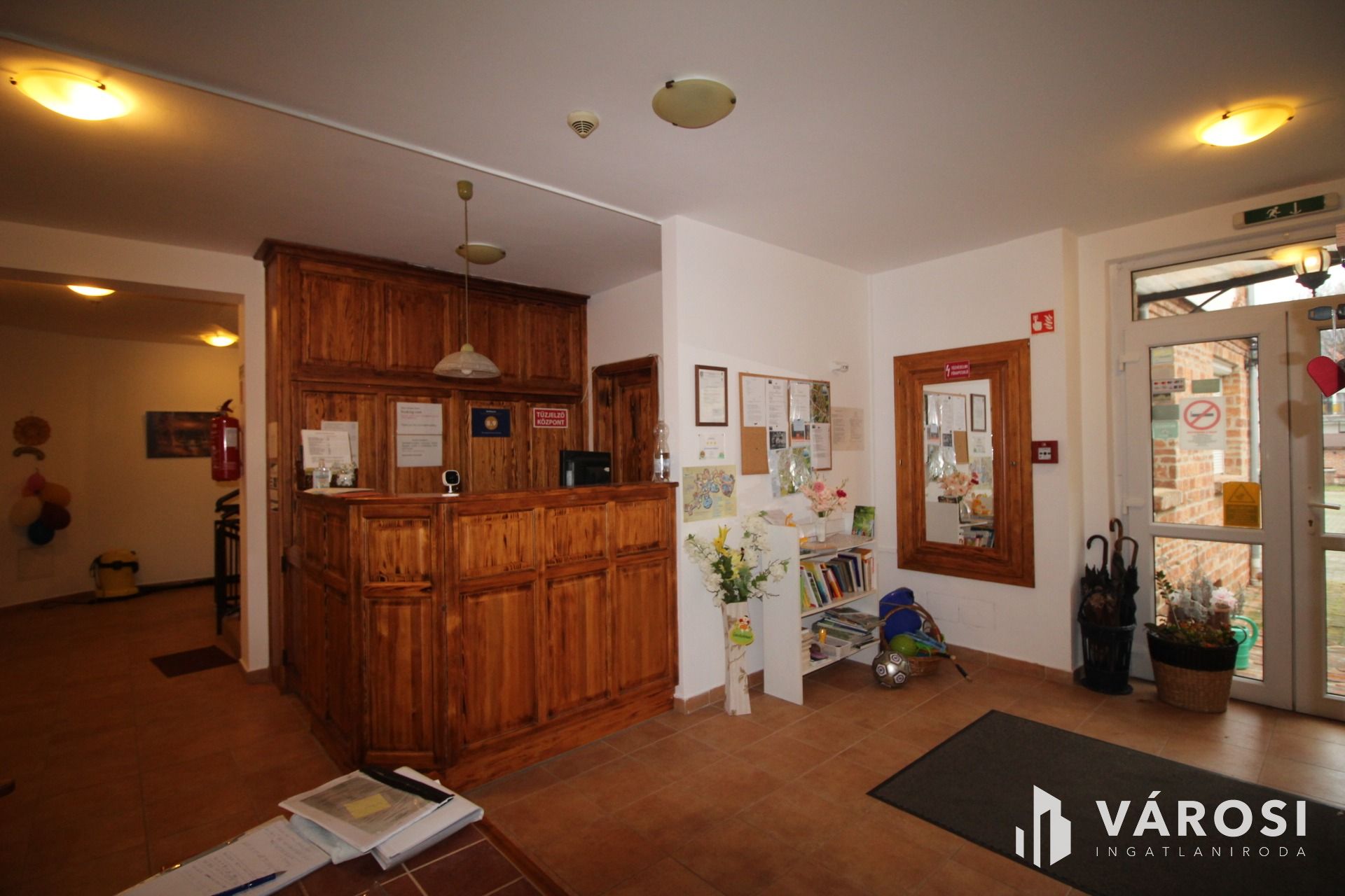 A földszinten recepció fogadja az érkező vendégeket.
