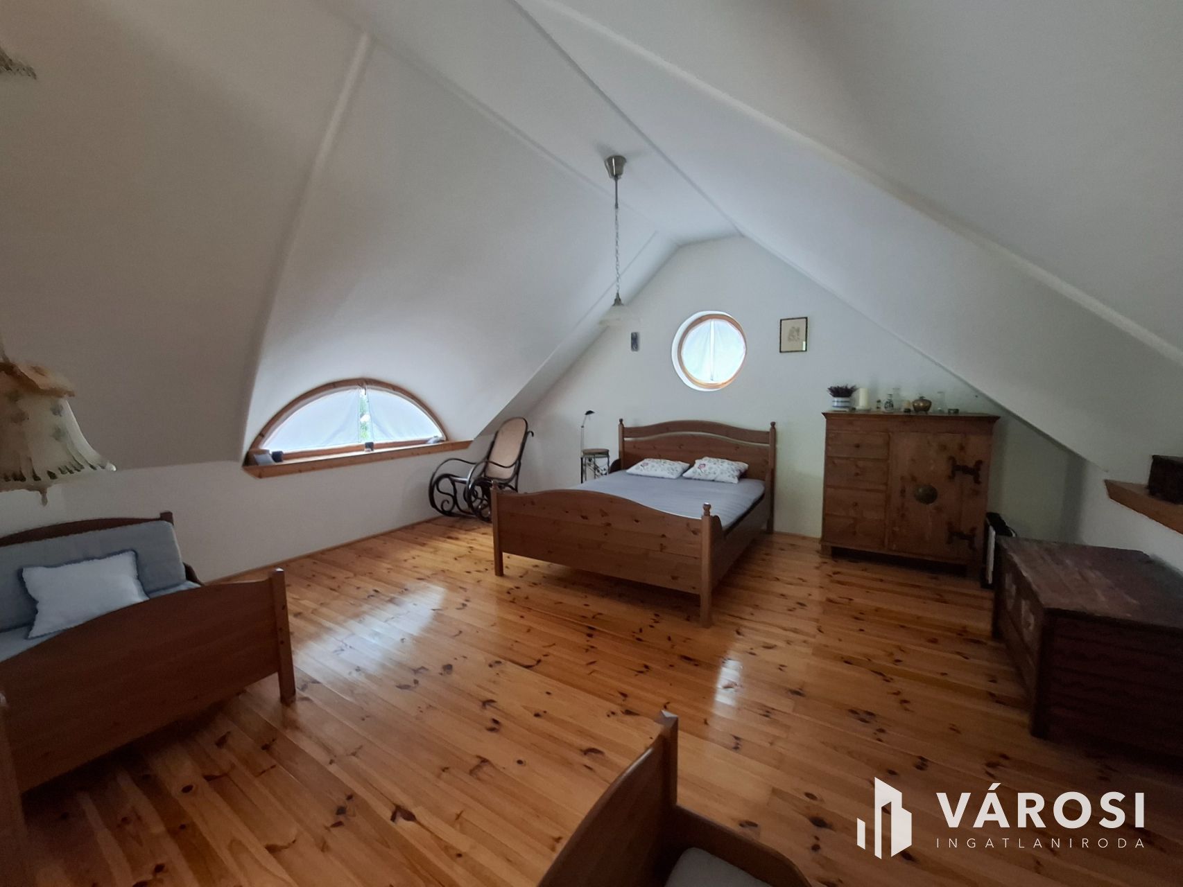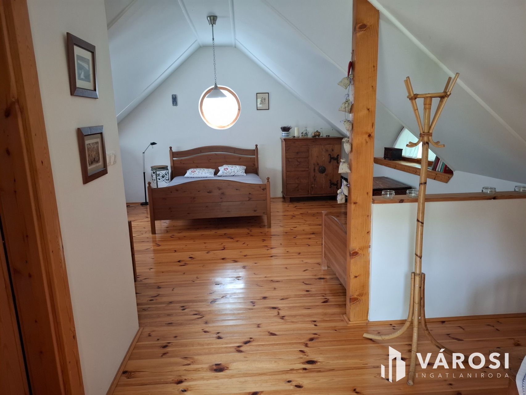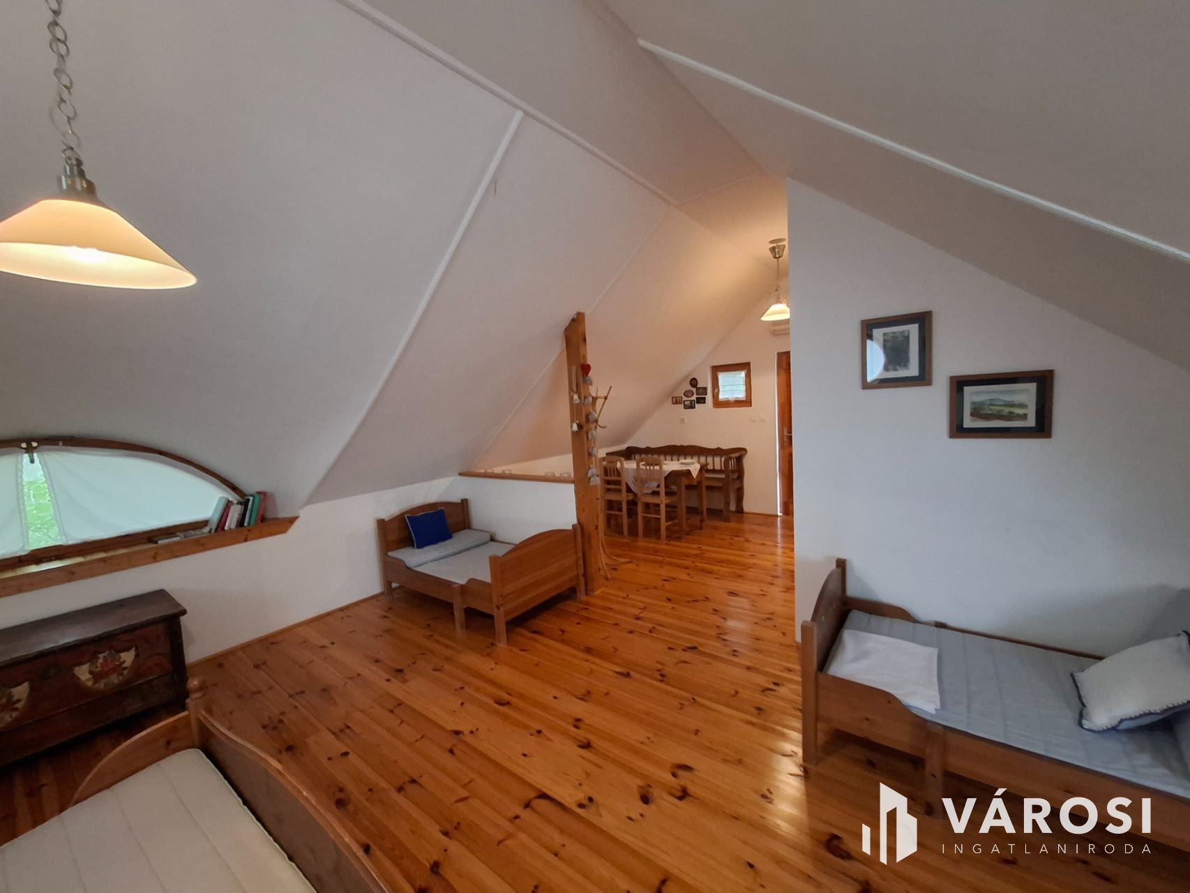 Az emelet külön bejárattal, terasszal és tágas nappali-hálószobával rendelkezik, ahonnan szintén részben balatoni panoráma nyílik.