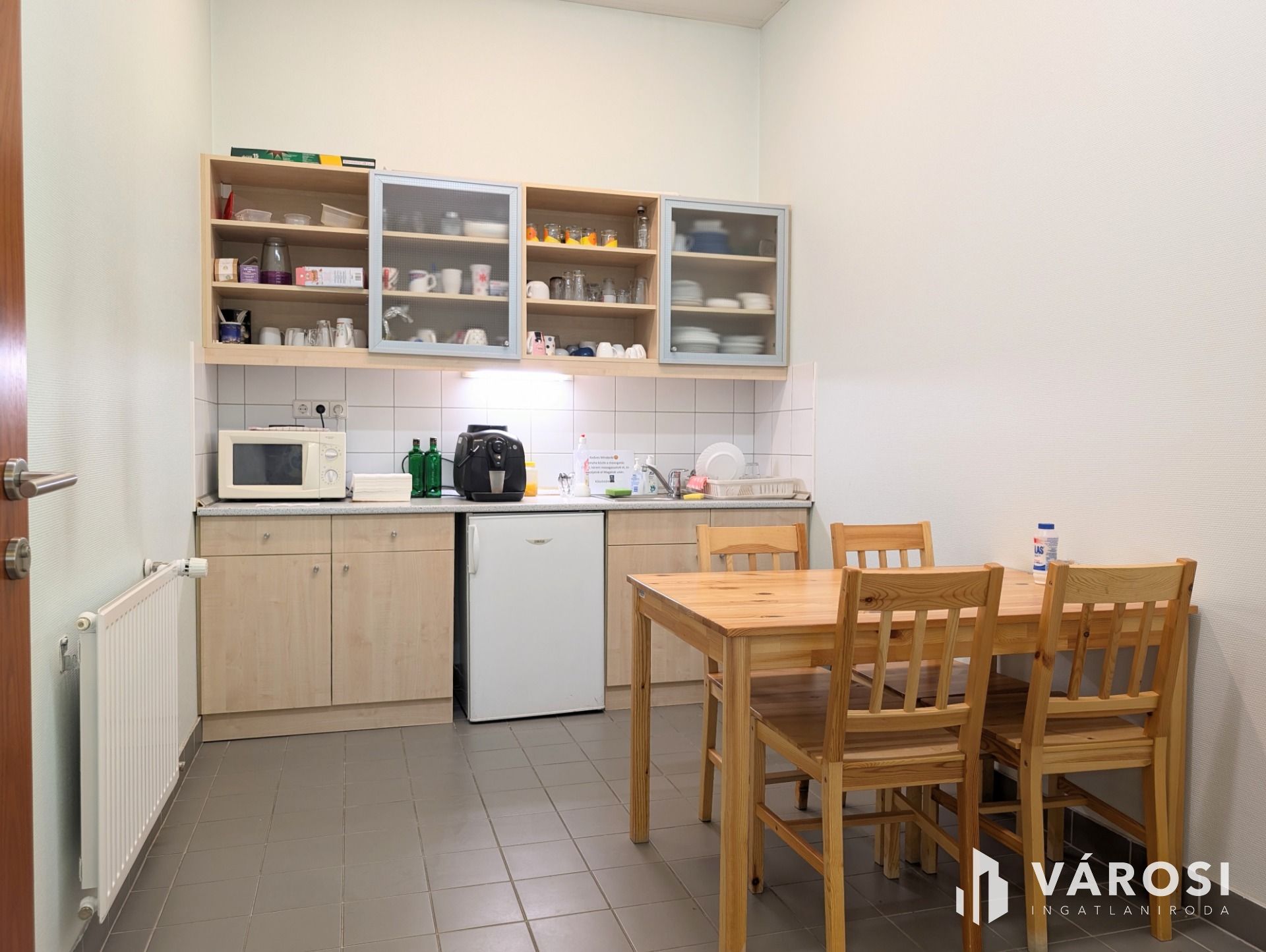 Az épület egy saját belső kb. 500m2 alapterületű betonozott udvart ölel körbe, ahol kb. 15-20 autó parkolására van lehetőség. Az ingatlan fűtése radiátorokkal van megoldva, ahol a víz melegítéséért 4 automata gázkazánból álló korszerű hőközpont felel. A klimatizálásról szintén központi klímarendszer gondoskodik. Az ingatlan áram- és informatikai hálózata magas terhelhetőségű és minőségű, évek óta egy bankfiók és helyi banki központ működését biztosítva. Belső lift könnyíti a közlekedést, akadálymentesített terekkel rendelkezik.