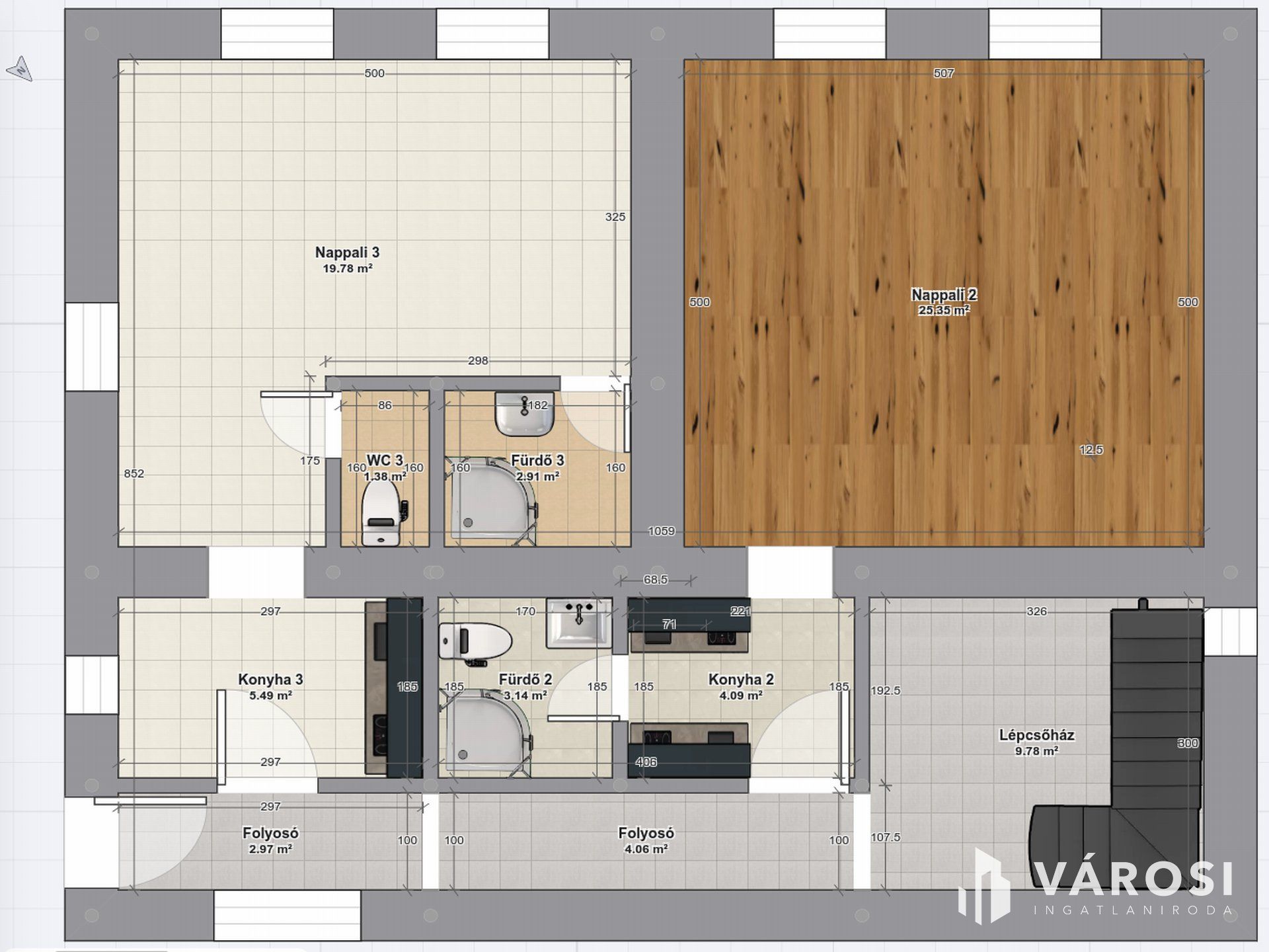 - 3 szoba, konyha, külön fürdő és WC