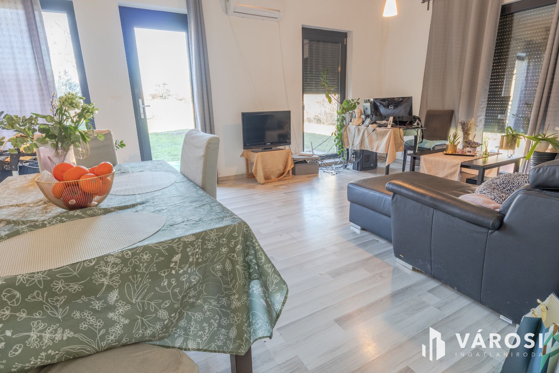 Az ingatlan belső hőmérséklete padlófűtéssel és klímával megoldott.