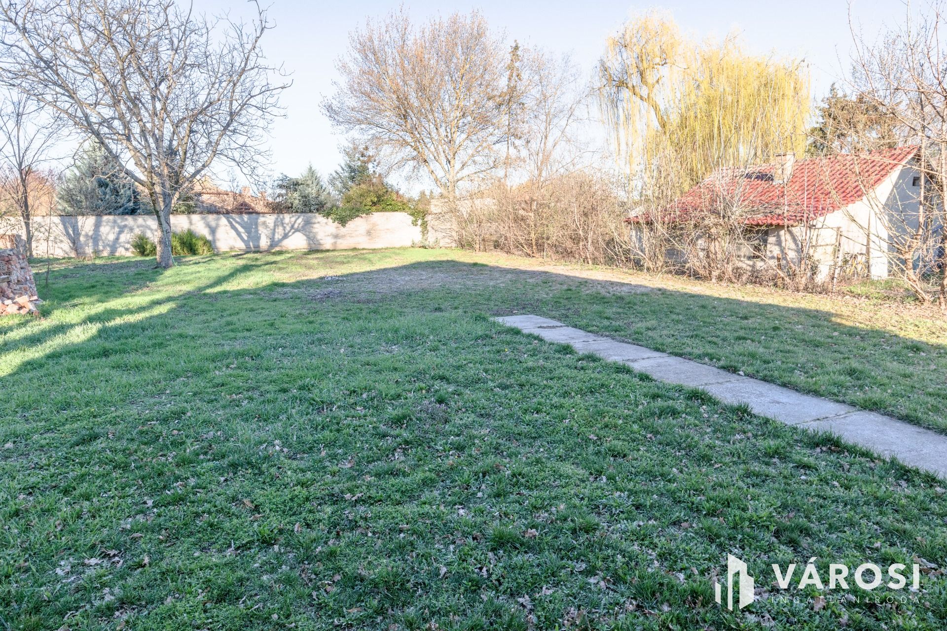 A 24 méter széles utcafront és a közel 50 méter hosszú telek hátsó részére még egy családi ház építhető!