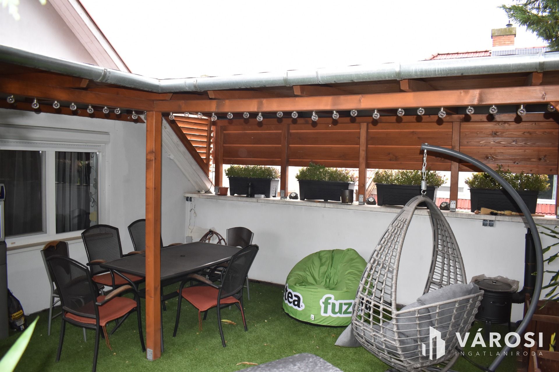 Az ingatlanhoz ki lett alakítva továbbá több hangulatos, világos fedett terasz is