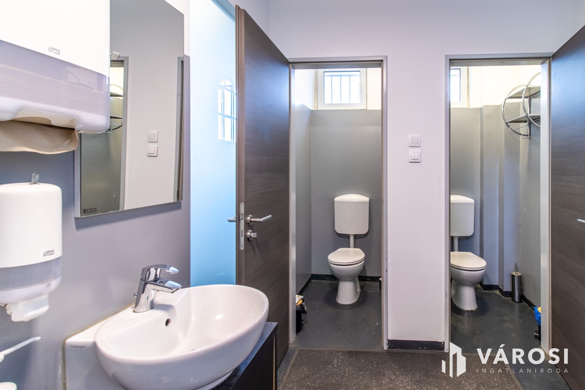 Csarnok: 2 WC, kézmosó, zuhanyzó, öltöző