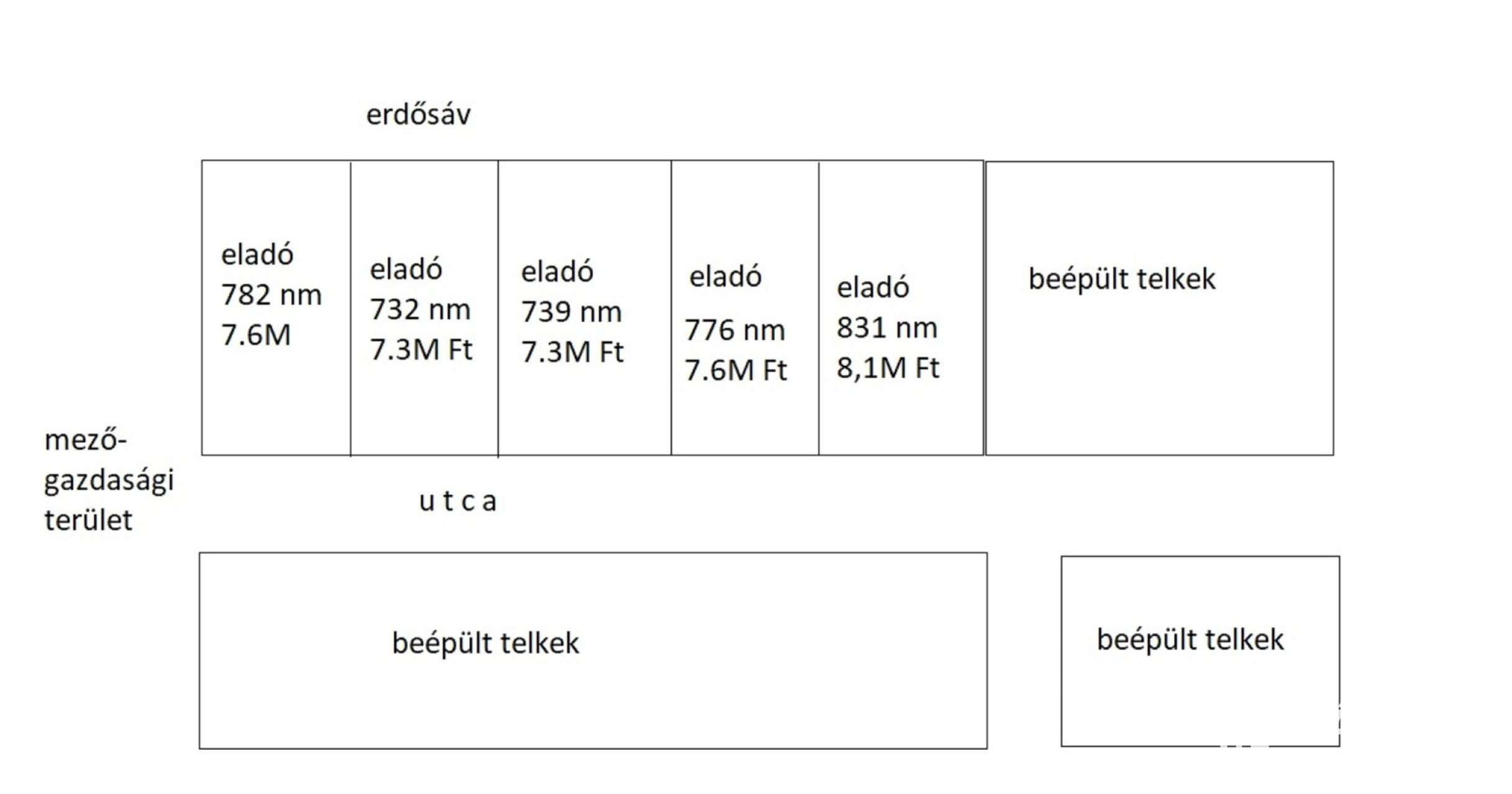 A szomszédos telkek is eladók, a mellékelt vázlatos rajz szerint.