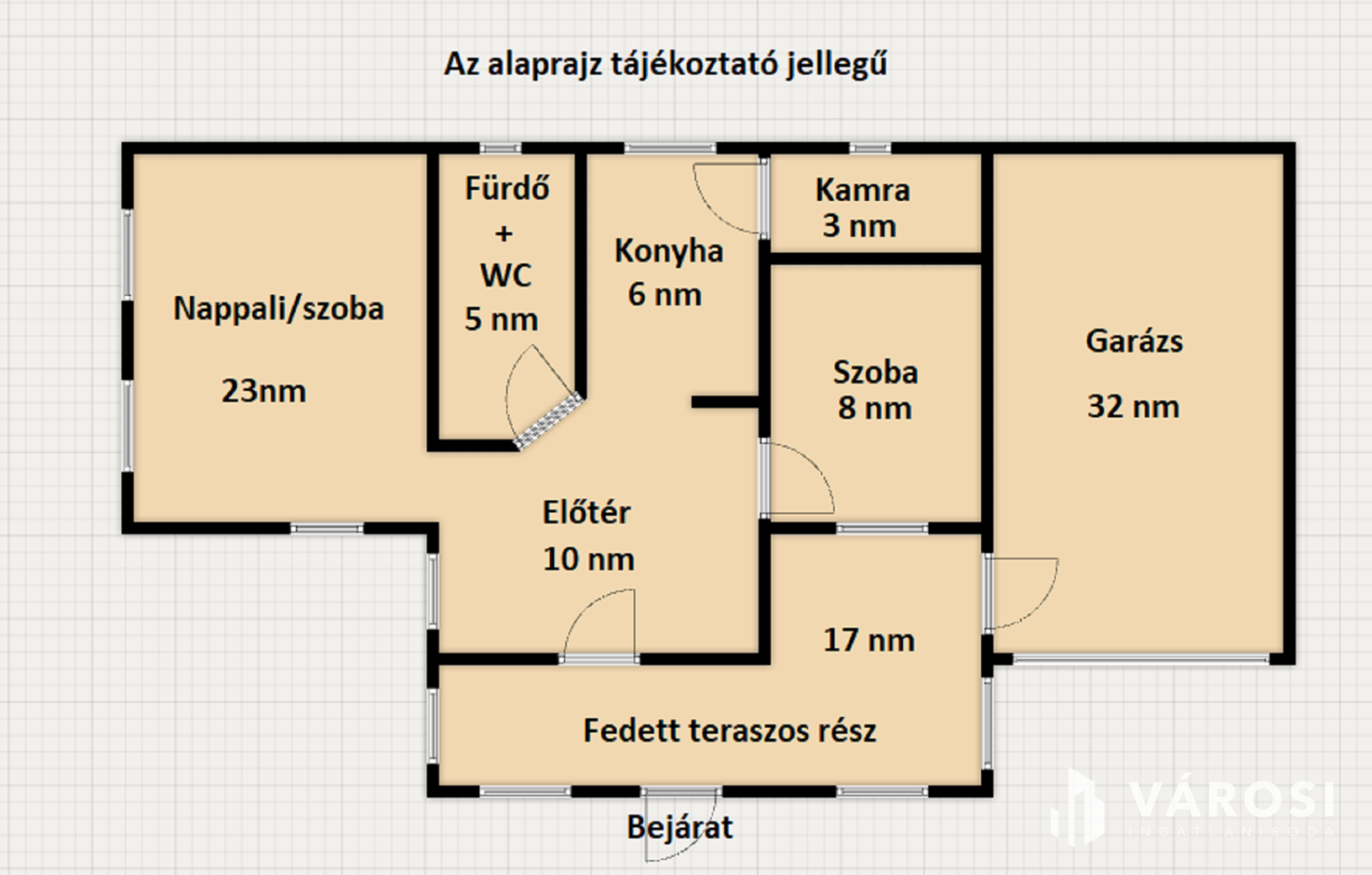 A lakóház rész 73 nm hasznos alapterületű. Ehhez jön pluszba egy 32 nm nagyságú garázs. A képek között megtalálható egy tájékoztató jellegű alaprajz, azon a pontos nm felbontások is fel vannak tüntetve.