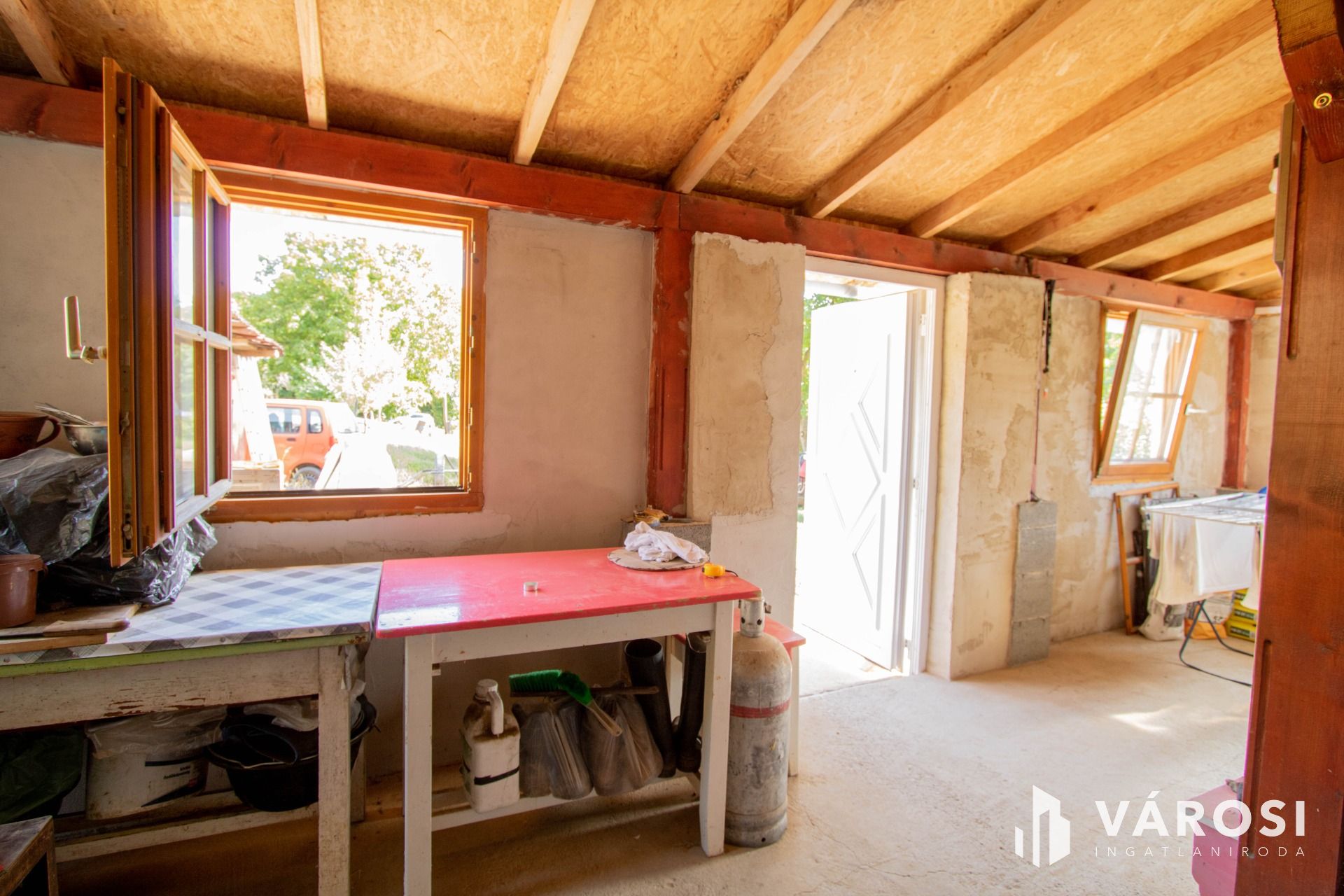 A lakóház rész, ami lakhatásra tökéletesen alkalmas egy párnak vagy egy kisebb családnak is ideális, jelenleg is felújítás alatt áll. Most a szoba rész befejezése zajlik épp. Azután pedig a külső színezés következik. Az ingatlan és a terület kettő HRSZ-on helyezkedik el. A területen található még egy másik épület is, ami mezőgazdasági épületként funkcionál, de igény esetén abból is szép lakható ingatlan alakítható ki.
