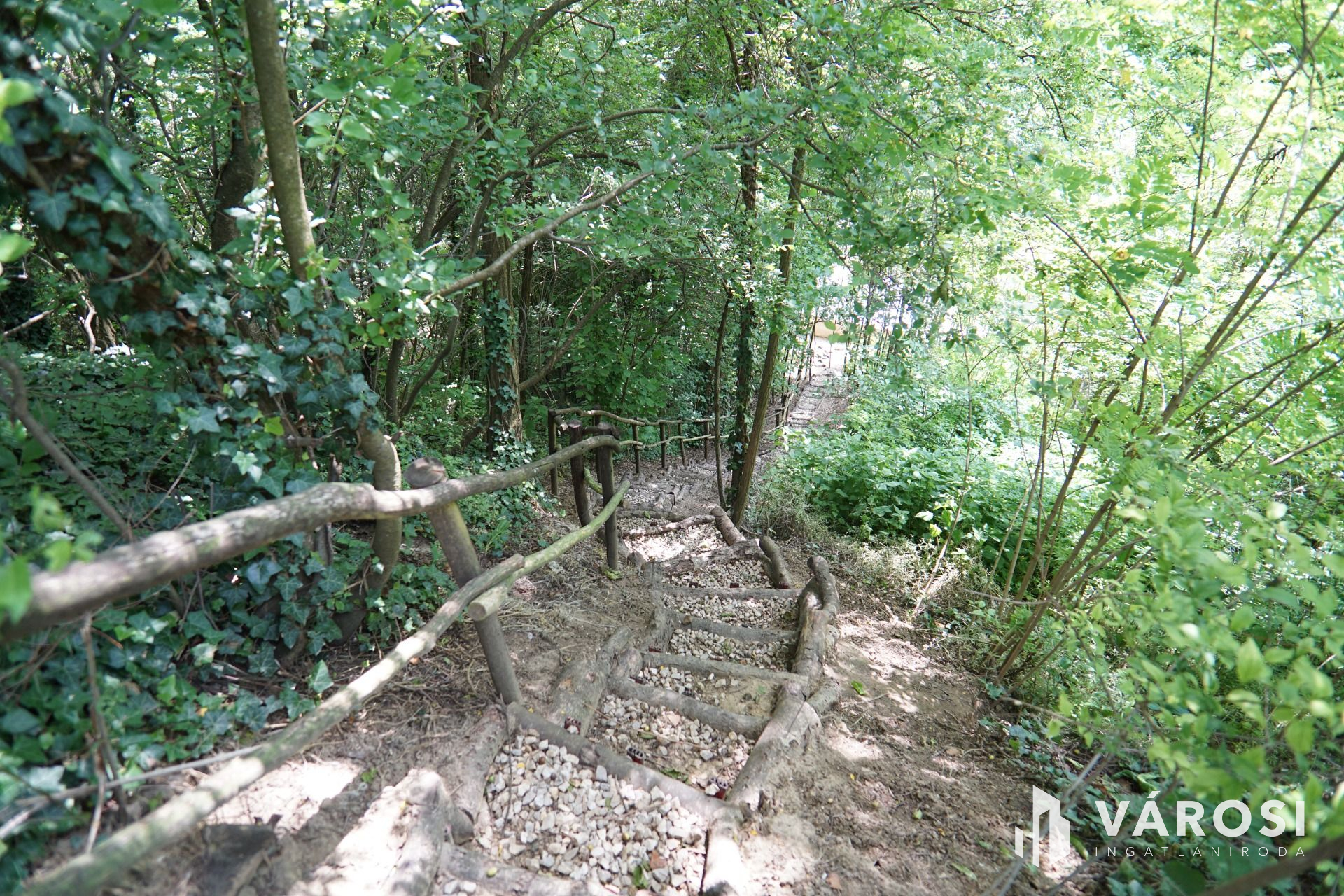 A telek, két utcából megközelíthető alsó részén egy szép kis erdő található, valamint egy parkoló ahová a víz és a villany bevezetése is megtörtént.