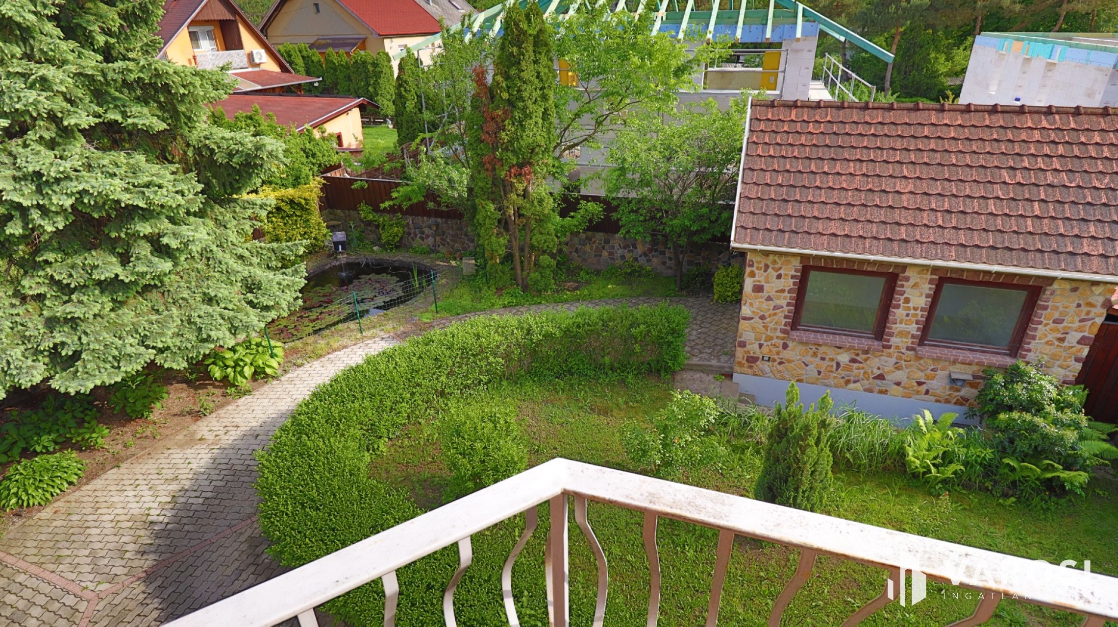 Gyönyörű épített kerttel, kerti tóval, külön álló kisházzal amely szolgálhat garázsként vagy akár lakhatóvá is alakítható, esetleg válallkozás is futtatható benne. A kisház alatt egy borospince található amelyhez gyönyörű kézzel faragott kőből kirakott lépcső vezet.