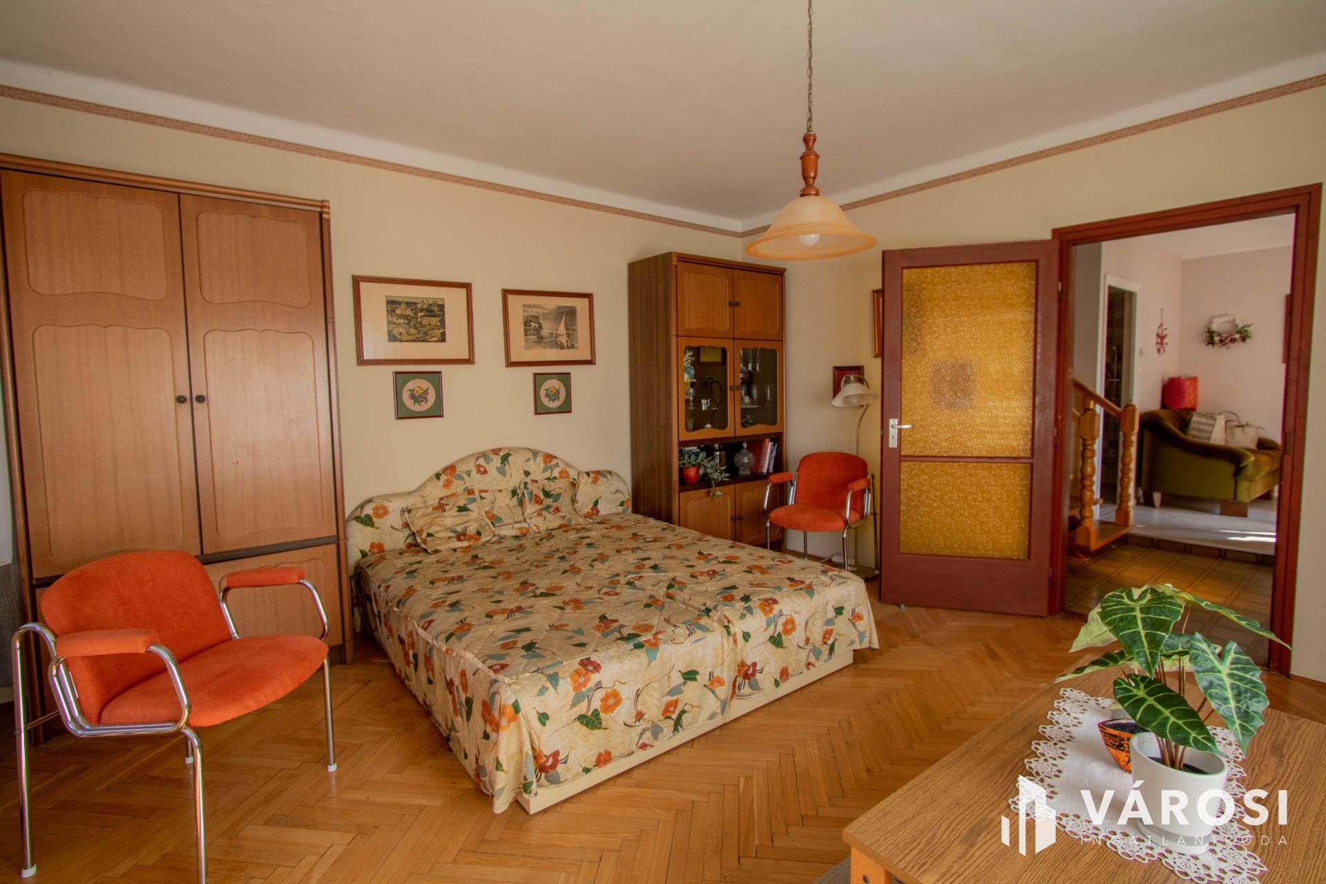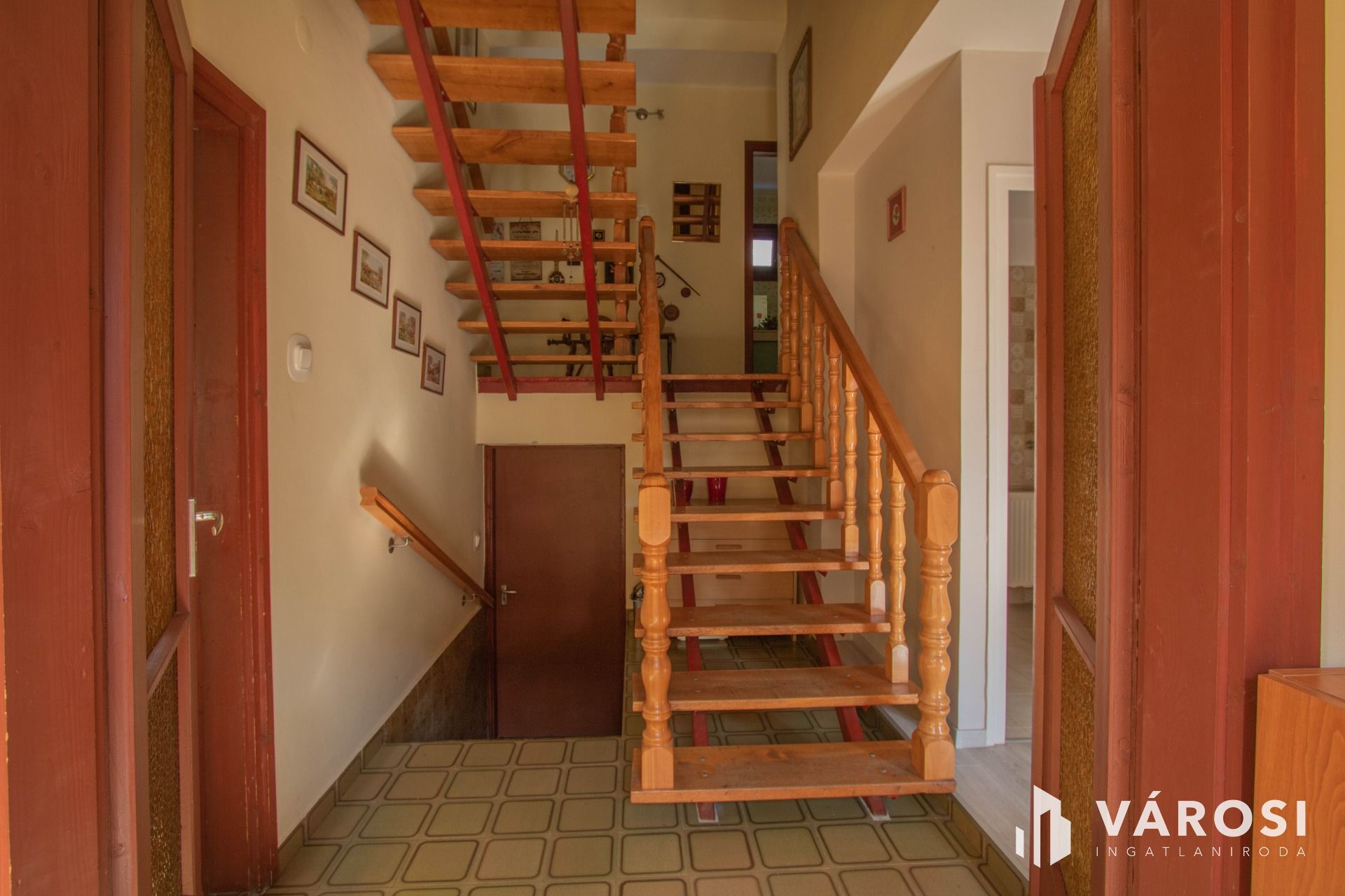 A ház szint eltolással épült, 2 emeletes. A ház földszinti részén egy tágas, világos nappali található, egy kisebb társalgó és egy 3 éve készült fürdőszoba. Azt ezt követő szinten egy étkező, egy konyha, egy kamra, egy nagy fürdő és egy külön WC található. Innen a ház emeleti részére érve 2 szoba lett kialakítva, mindegyik szobához tartozik egy erkély is. Azt ezt követő szinten pedig egy szoba + gardrób és egy jelenleg be nem épített, csak tárolásra használt helyiség van.