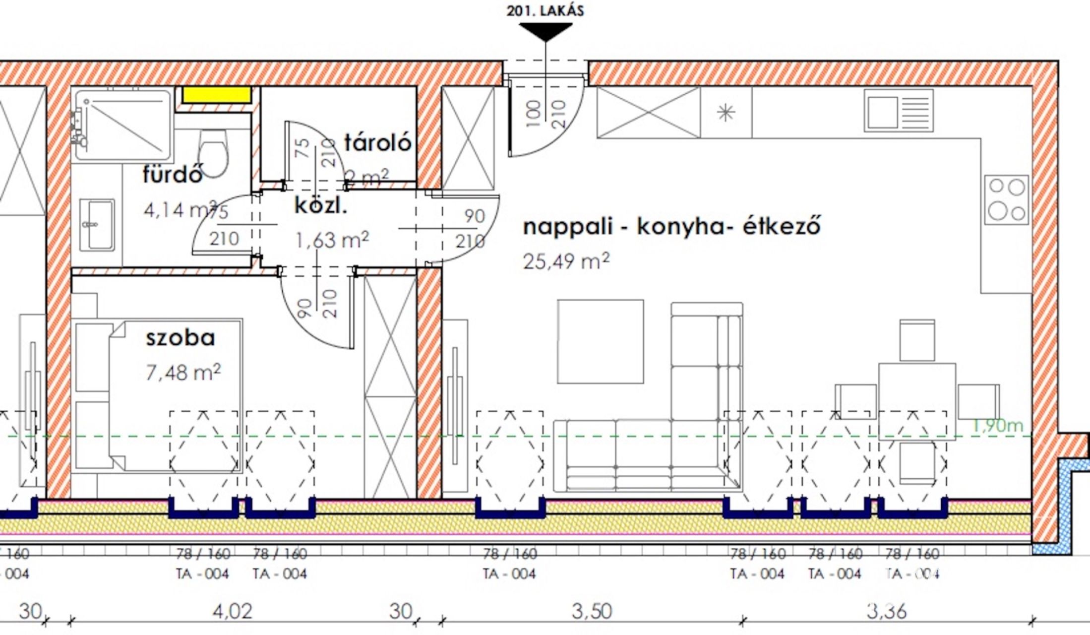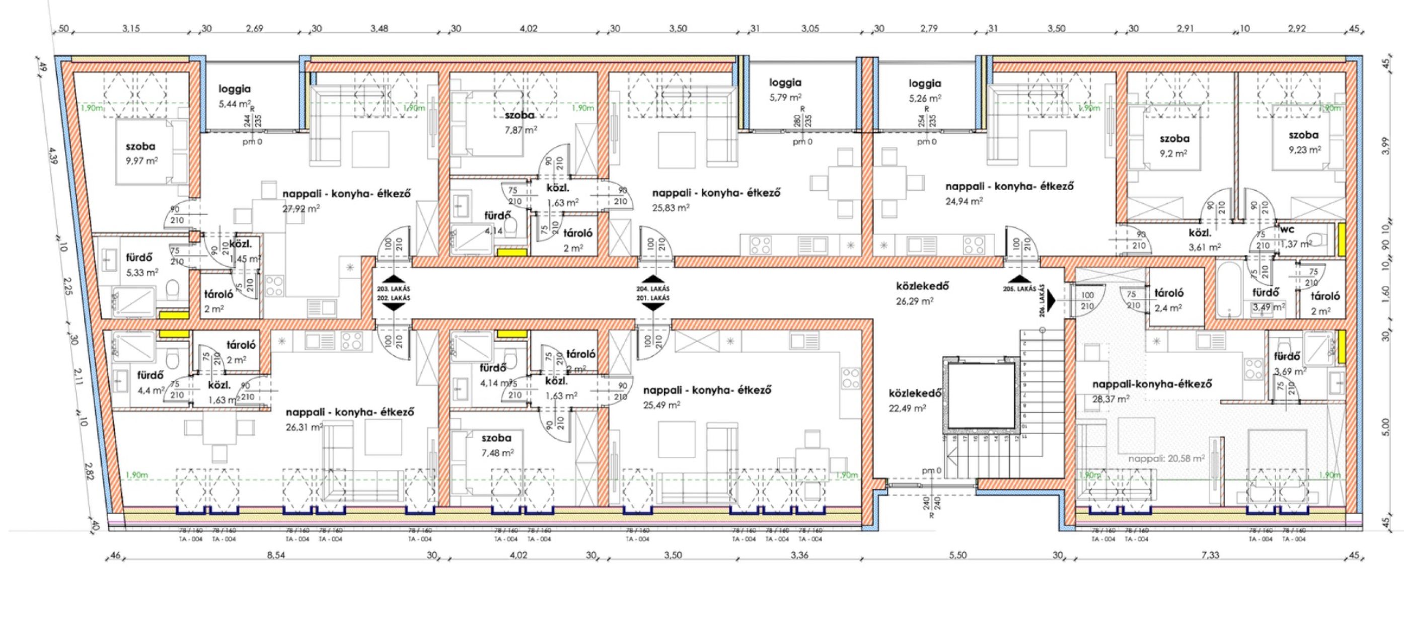 Makón, presztizs lokációval rendelkező - Makói fürdőtől 60 méterre, a Napfény Residenceben - a Páva utcában , Eladó egy most induló, tégla építésű, MÁSODIK EMELETI , 40,74 nm-es élettérrel rendelkező, amerikai konyha nappali plusz egy szobás,loggiás, lakás (201.lakás).