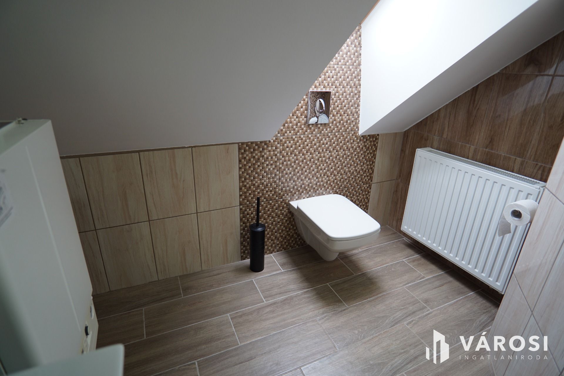 Tetőér: közlekedő, szoba, zuhanyzós fürdő mellékhelységgel együtt.