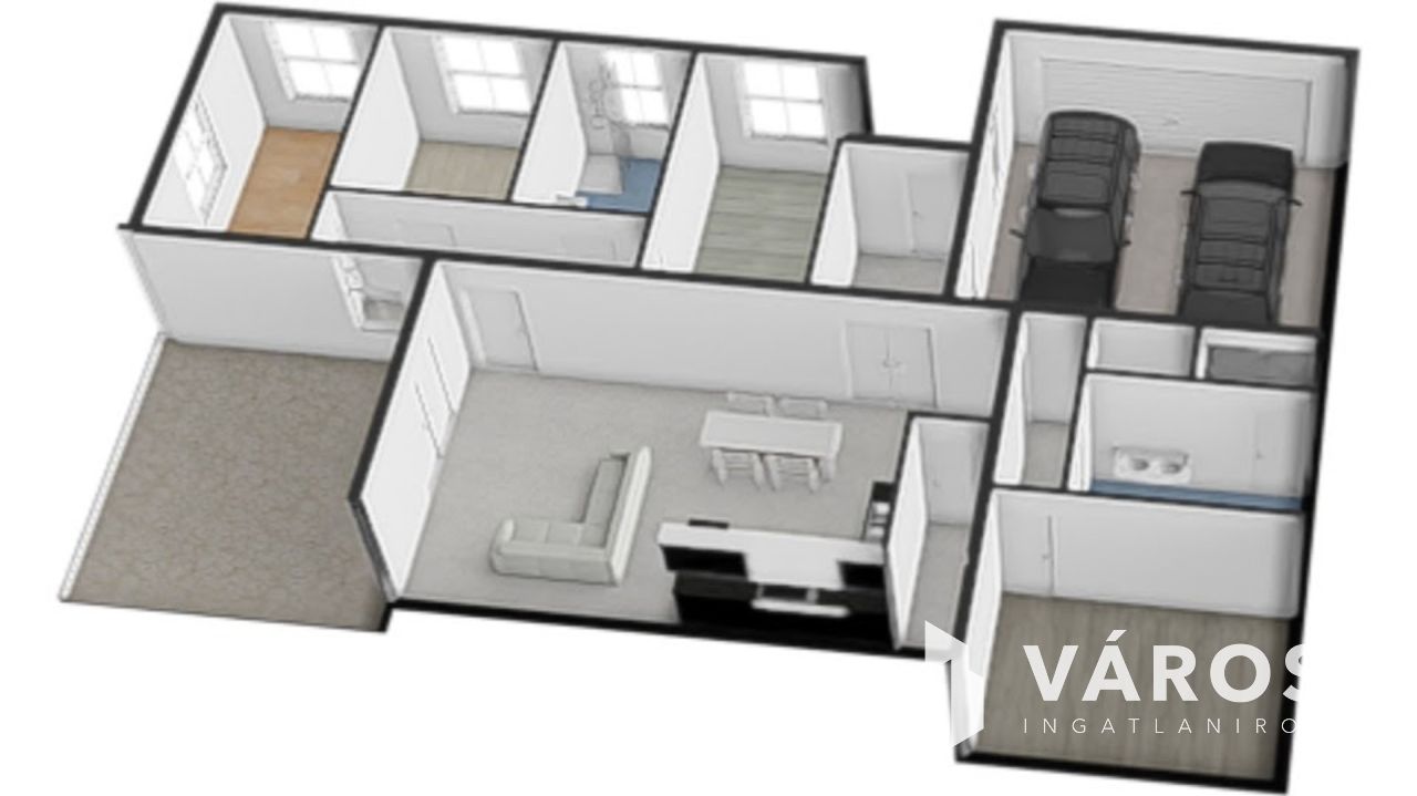 - Amerikai-konyhás nappali, 4. hálószoba, 2. fürdőszoba, kamra, dupla garázs , terasz.