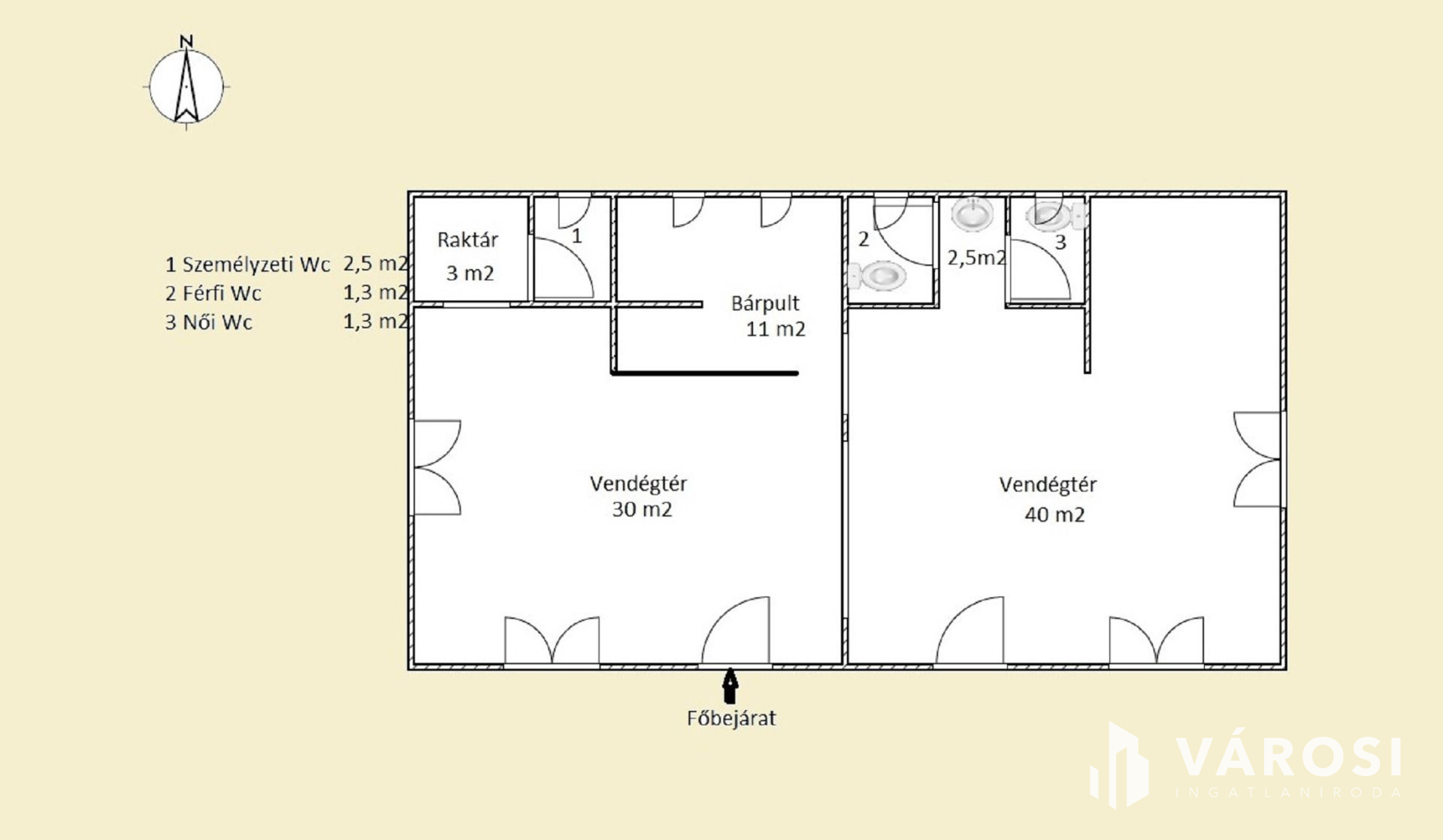 Vendégtér két részből áll ,az épület előtt terasz található .