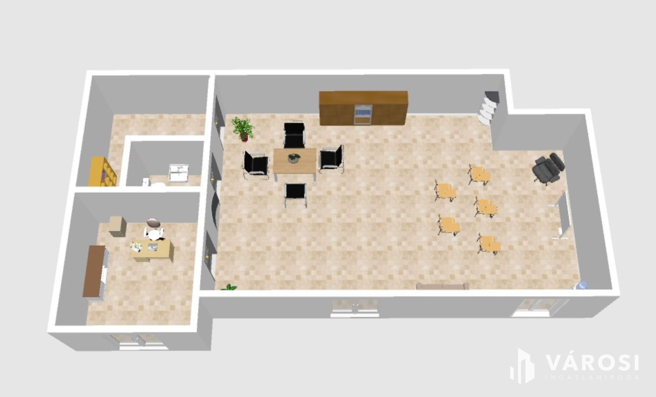 Az ingatlan riasztó rendszerrel ellátott, így vállalkozása mindig biztonságban tudhatja értékeit.
