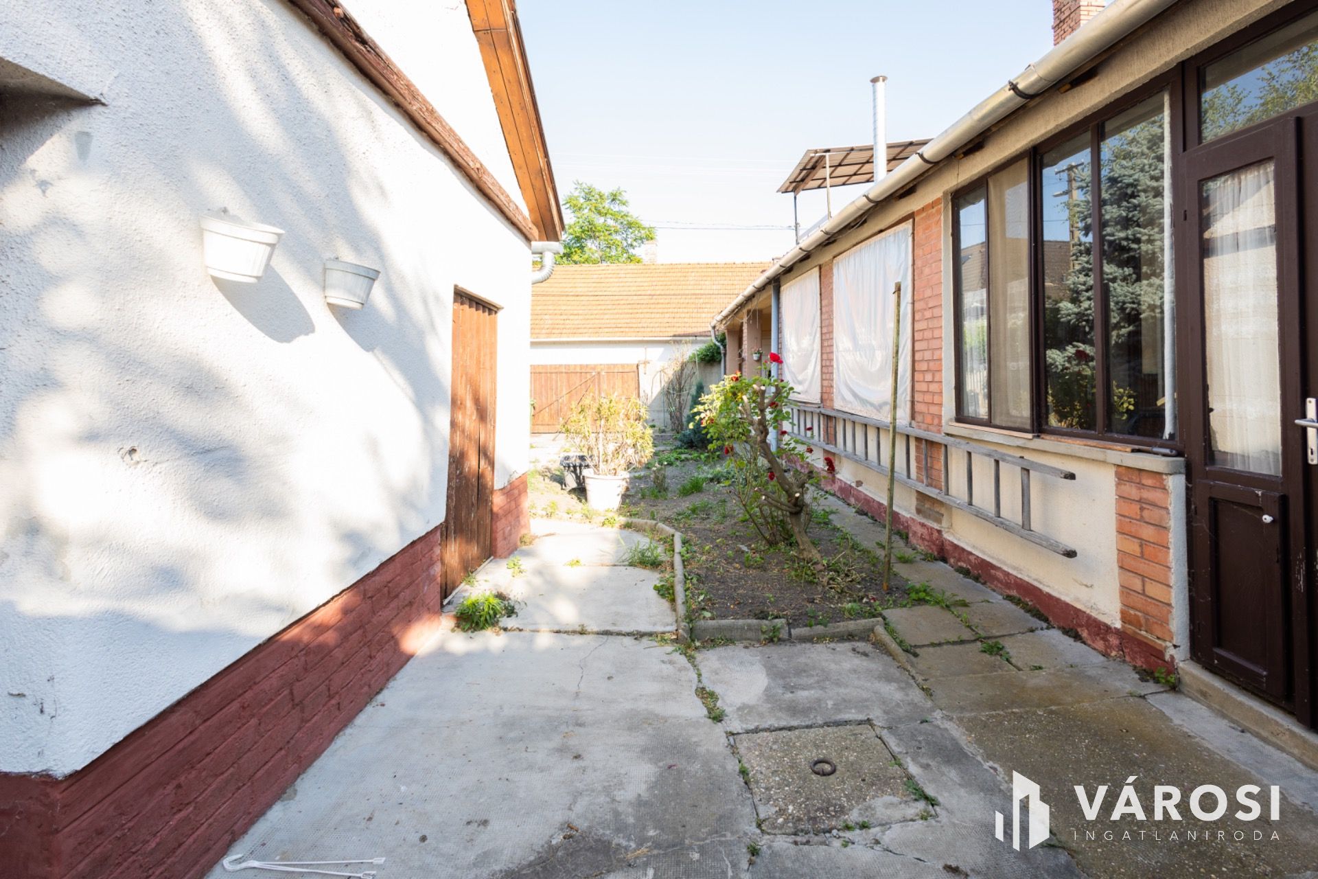 - az ingatlan két részből áll, a főépület tégla falazatú, a hátsó épületrész vályog+tégla
