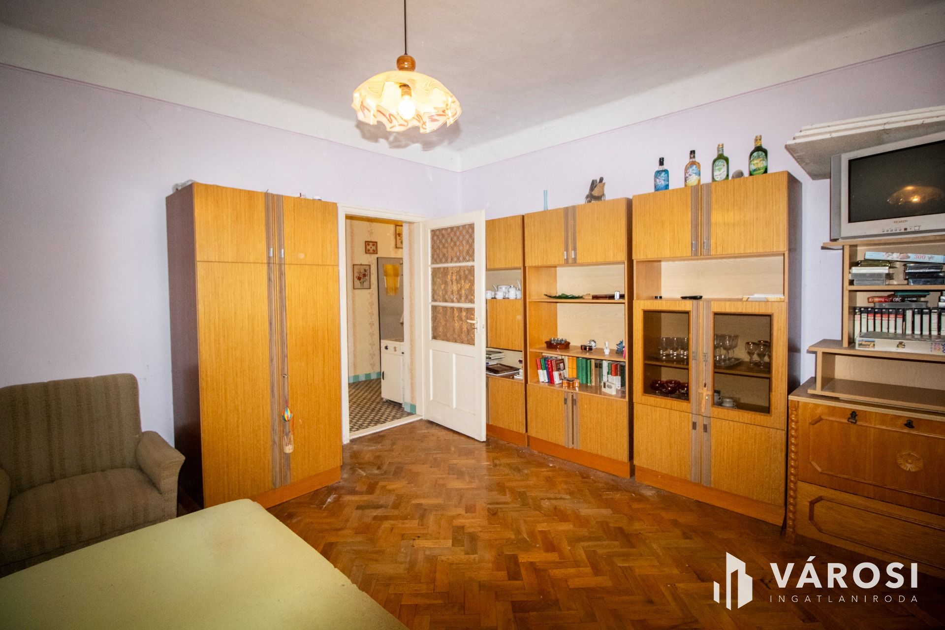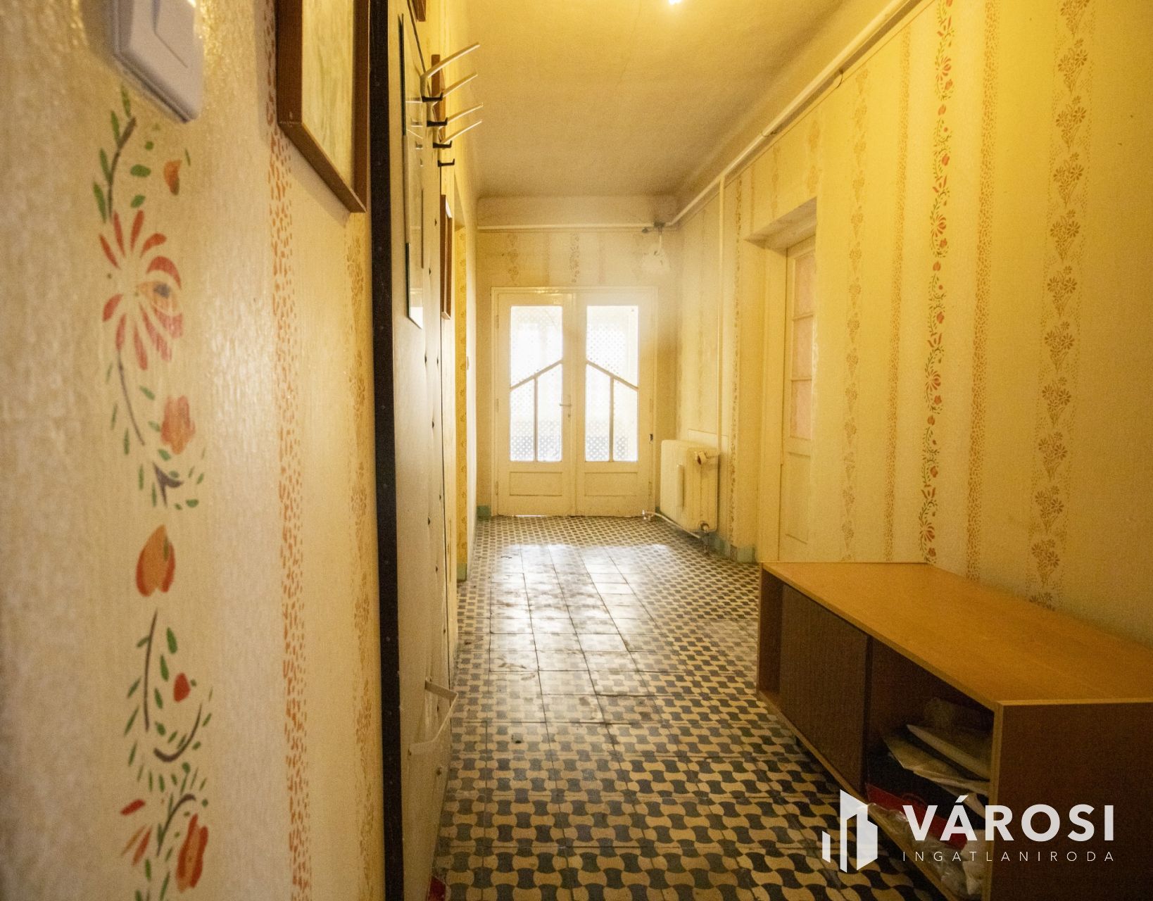 A ház dupla bejáratos: az utcafront felől előszoba és közlekedő fogad, hátulról egy külön kis előtérbe érkezünk, ahonnan szemben a konyha, jobbra az étkező, balra pedig a nappali található. A nappali mellett három különálló, nagy méretű hálószoba helyezkedik el, ezen kívül fürdőszoba és kamra tartozik még a lakótérhez. A helyiségek arányosak, jól bútorozhatók, egy nagycsalád számára is kényelmesen használhatók.