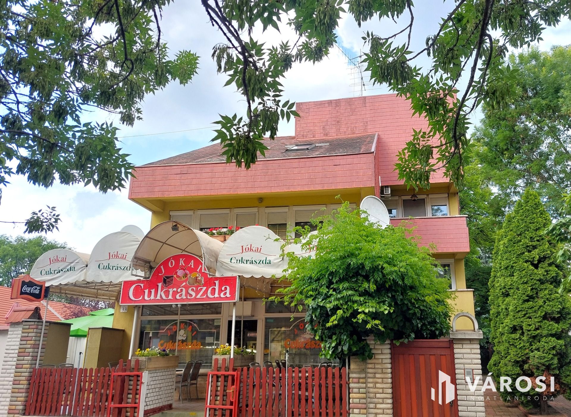 A földszinten, 83m2 alapterületen a több, mint 40 éve működő, ma is népszerű Jókai Cukrászda, amelyhez a melléképületben kialakított, professzionális berendezésekkel felszerelt cukrászüzem tartozik. A városban és környékén szervezett nagy rendezvényekre, esküvőkre a süteményeket többnyire innen rendelik. A cukrászatban használt különleges olasz fagyigépek, pasztőröző gépek és más specifikus cukrászüzemi berendezések, felszerelések magas értéket képviselnek, melyet az eladási ár tartalmaz.