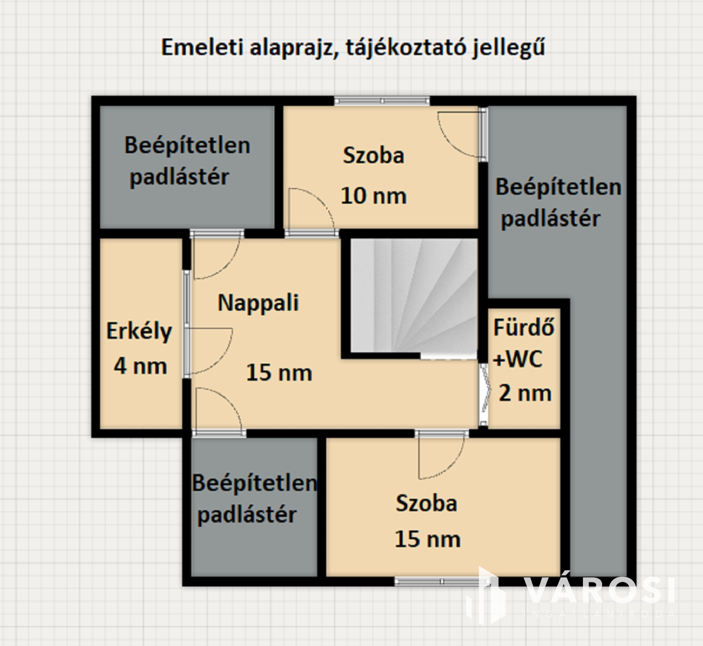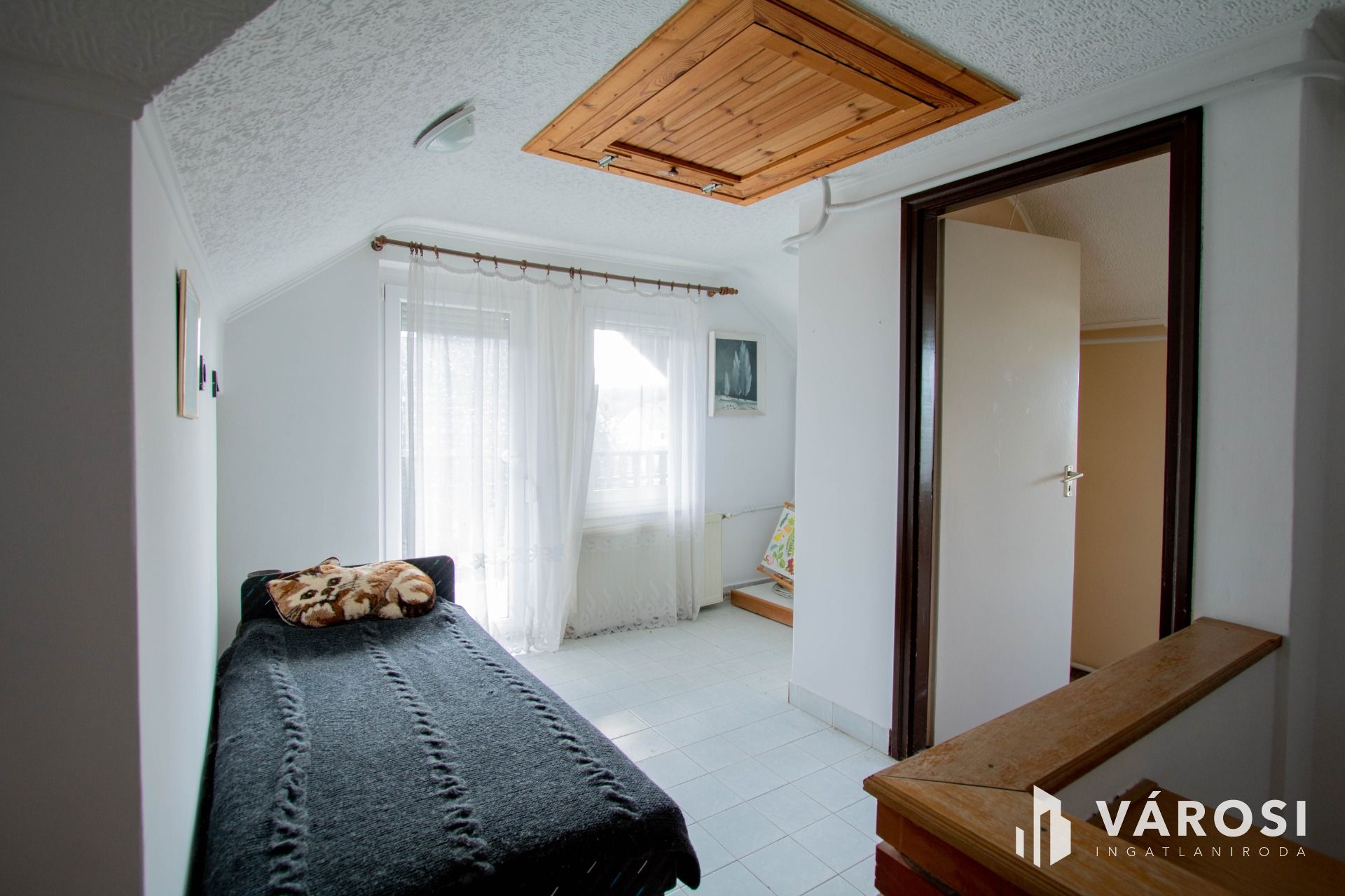 A ház tetőtér része be lett építve, itt kettő szoba és egy fürdőszoba + WC, meg egy kisebb nappali került kialakításra.