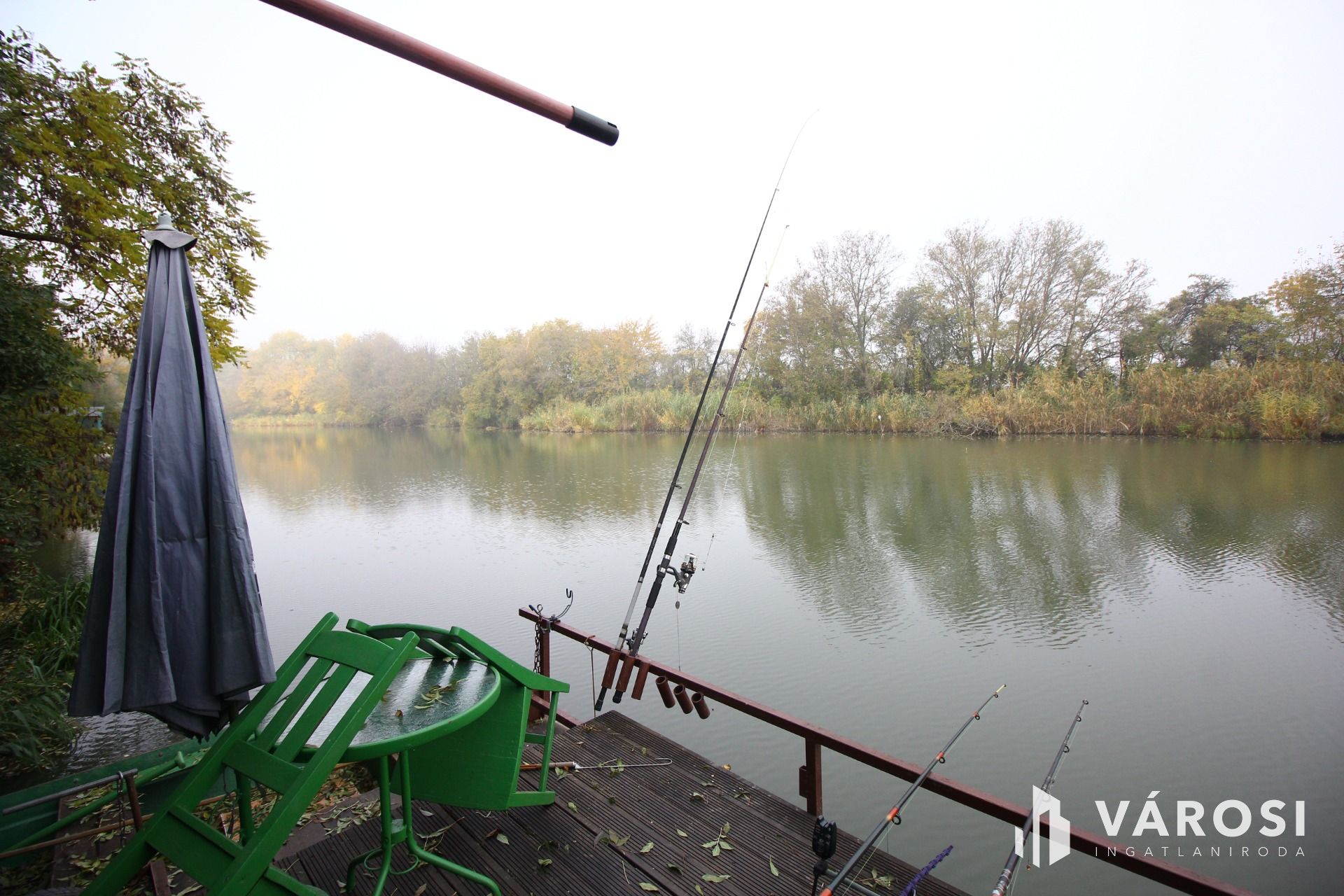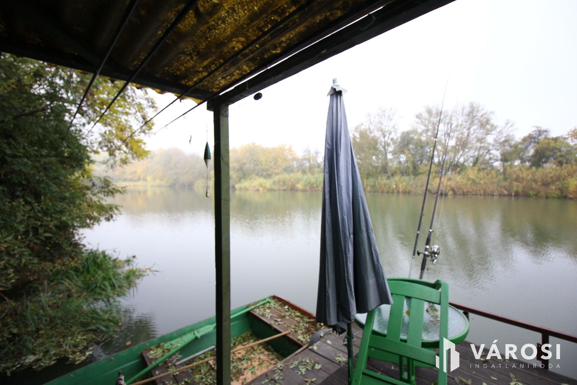 Az ingatlannal szemben 20m2-es stég áll rendelkezésre a horgásznak, valamint csónak épület, kiülővel, és minden kényelemmel.