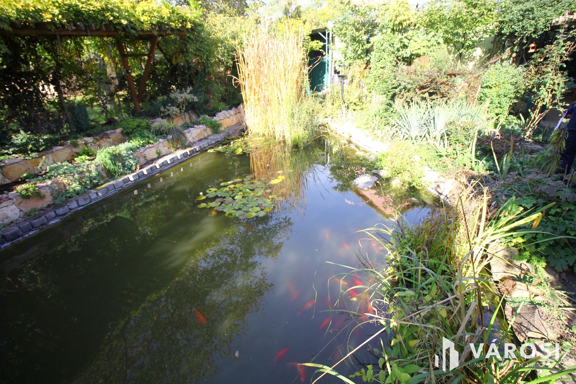 A dísztó 10m3-es többlépcsős szűrő berendezéssel, esőztetővel, díszkivilágítással, árnyékolóval, kis szoborral és csobogó, patakkal, nagyon sok egzotikus növény található szerte a világból. (Dél-Amerika, Japán, Ázsia). Mögötte található a szakszerűen kezelt gyümölcsös és palánta nevelő fólia sátor, valamint a házi állatok épületei. Az ingatlan önellátó! Megközelítése Csongrád és Szentes felől de Nagytőke felől is lehetséges.