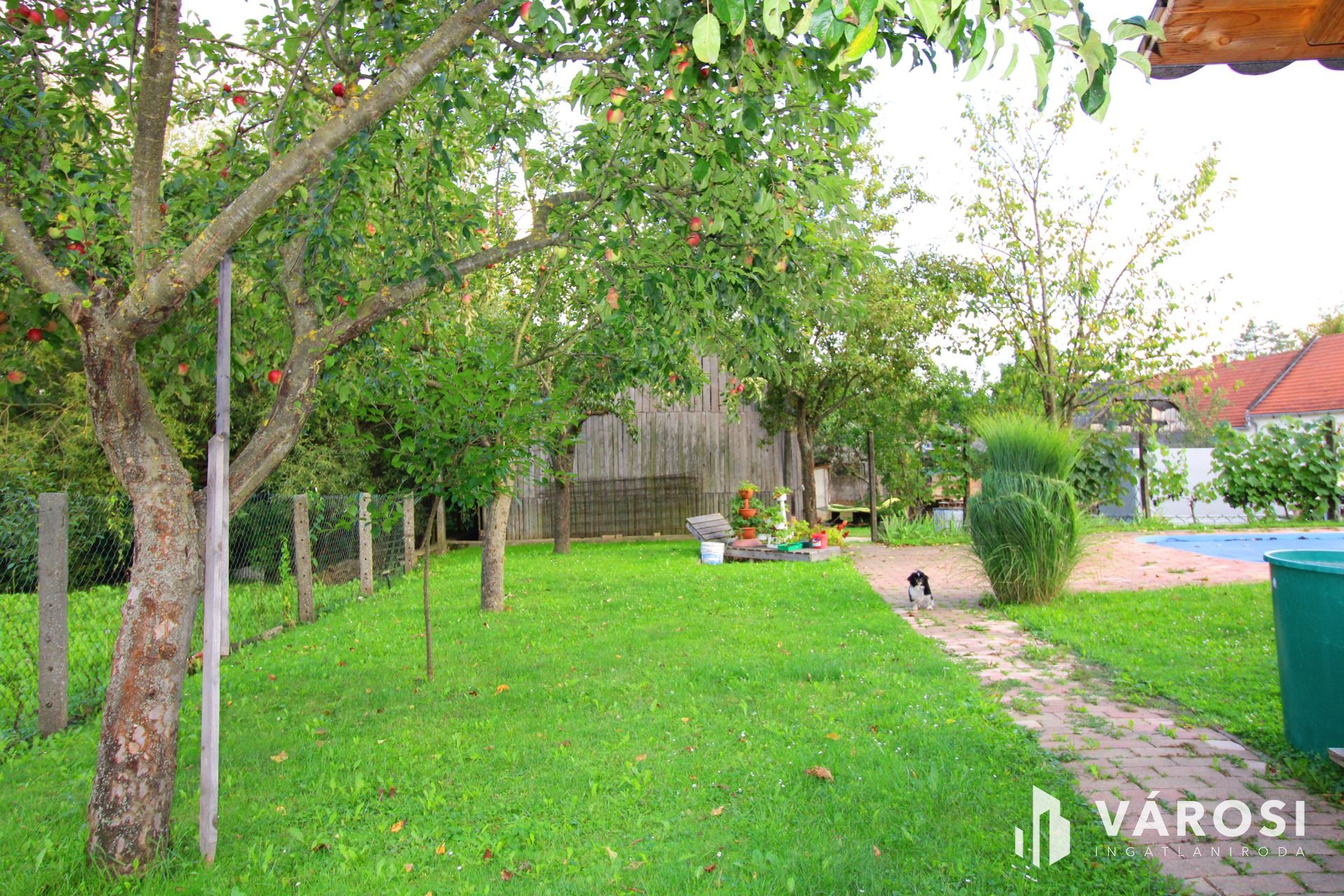 • Az 1000 nm-es gondozott udvaron nagyméretű medence, kültéri kemence és fedett kerti kiülő nyújthat kikapcsolódási lehetőséget a család vagy vendégek számára.