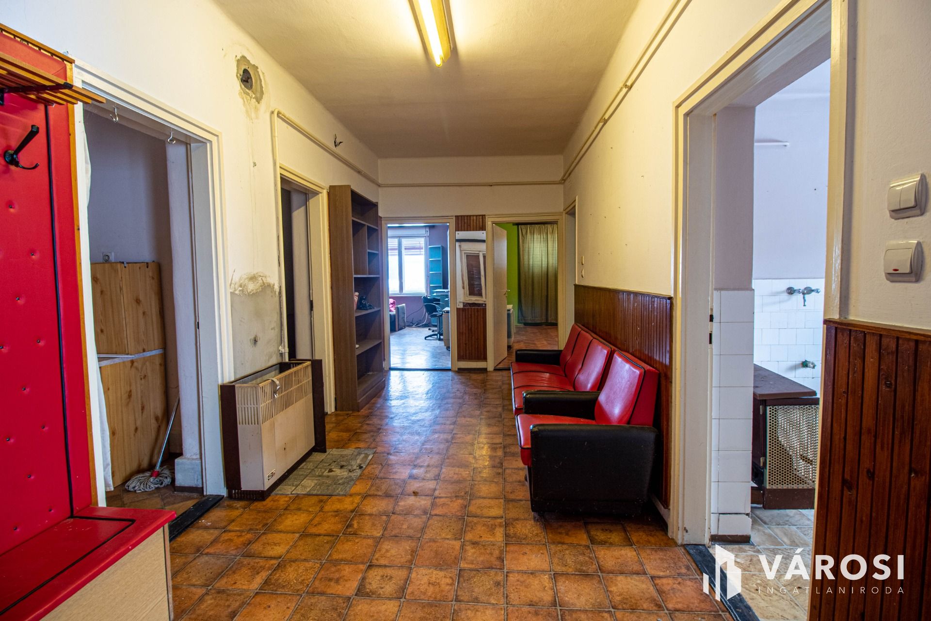 Az ingatlan sík, közel 1500 nm nagyságú területen fekszik, melyen régebbi melléképületek is helyet kaptak. A melléképületek jelentős ráfordítást igényelnek. Az épület átlagos állapotú, akár jelen állapotában is alkalmas lakhatásra, de korszerűsítés után valóban kiváló élettér alakítható ki benne. A ház alapja beton, falazata stabil. A helyiségek fűtéséről konvektorok gondoskodnak. Az utcafronti szobák alatt tágas, száraz pince húzódik. A lakótér helyiségei: 4 teljes értékű szoba, konyha, fürdőszoba, közlekedő, kamra, terasz. A 4 szoba akár nagyobb család számára is megfelelő, tágas otthont biztosíthat. Az ingatlan nem lakott, így adásvétel után rövid időn belül birtokba vehető.