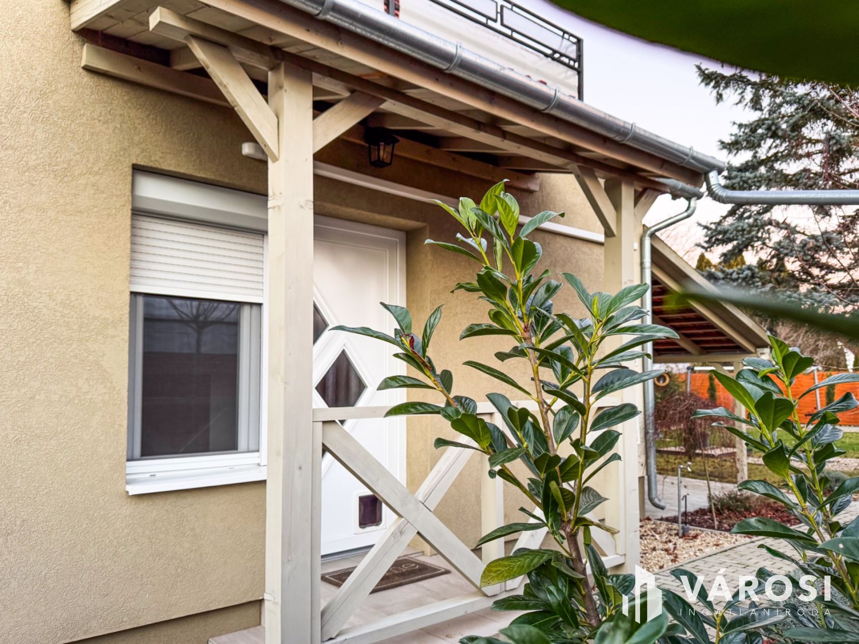A 450 m²-es telek parkosított udvarral, kertrésszel, terasszal és erkéllyel rendelkezik, ahol a kerti grillezőhely és a fúrt kút is növeli a komfortérzetet. Az udvari gépjárműbeálló lehetőséget ad az autó kényelmes elhelyezésére. A melléképület további tárolási megoldásokat kínál.
