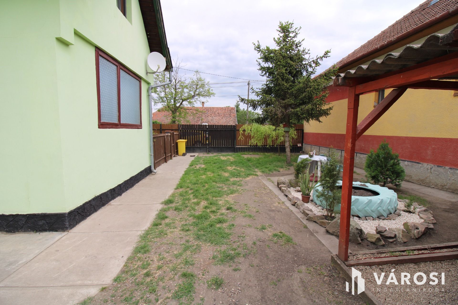 Eladó Tótkomlós városában, egy kertvárosias környezetben fekvő családi téglaház. A kétszintes ingatlan 1390 m²-es telken helyezkedik el, összesen 98 m² laktérrel rendelkezik. A házba belépve egy impozáns méretű amerikai-konyhás nappaliba érünk, mellyel szemben egy tágas, kellemes méretű szoba nyílik. A földszinten külön WC és egy sarokkádas fürdőszoba, valamint a konyha melletti spájzból juthatunk a garázsba. Az emeleten három kisebb méretű szobácska található, melyek lamináltpadlóval burkoltak az egyikből pedig egy tágas erkély nyílik. A falazat és a tetőszerkezet jó állapotú, a villamoshálózat felújítása megtörtént. Az udvarban fúrtkút található, valamint biztosított az udvari gépjárműbeálló lehetőség is.