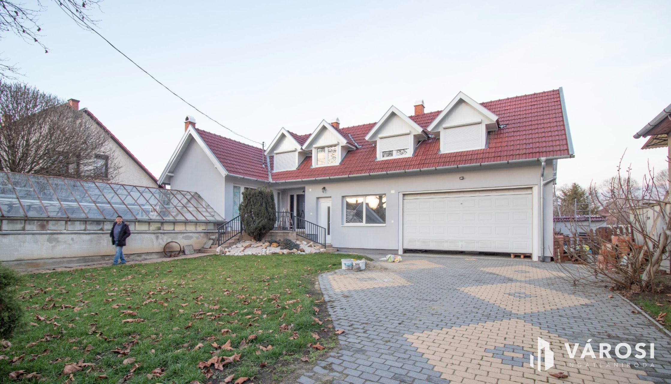 Az udvar 427 m2-es, az utca felől jó állapotú kerítéssel és kis- és nagykapuval kerített! Az udvaron Frühwald burkolatú járdák és bejáró került kialakításra.