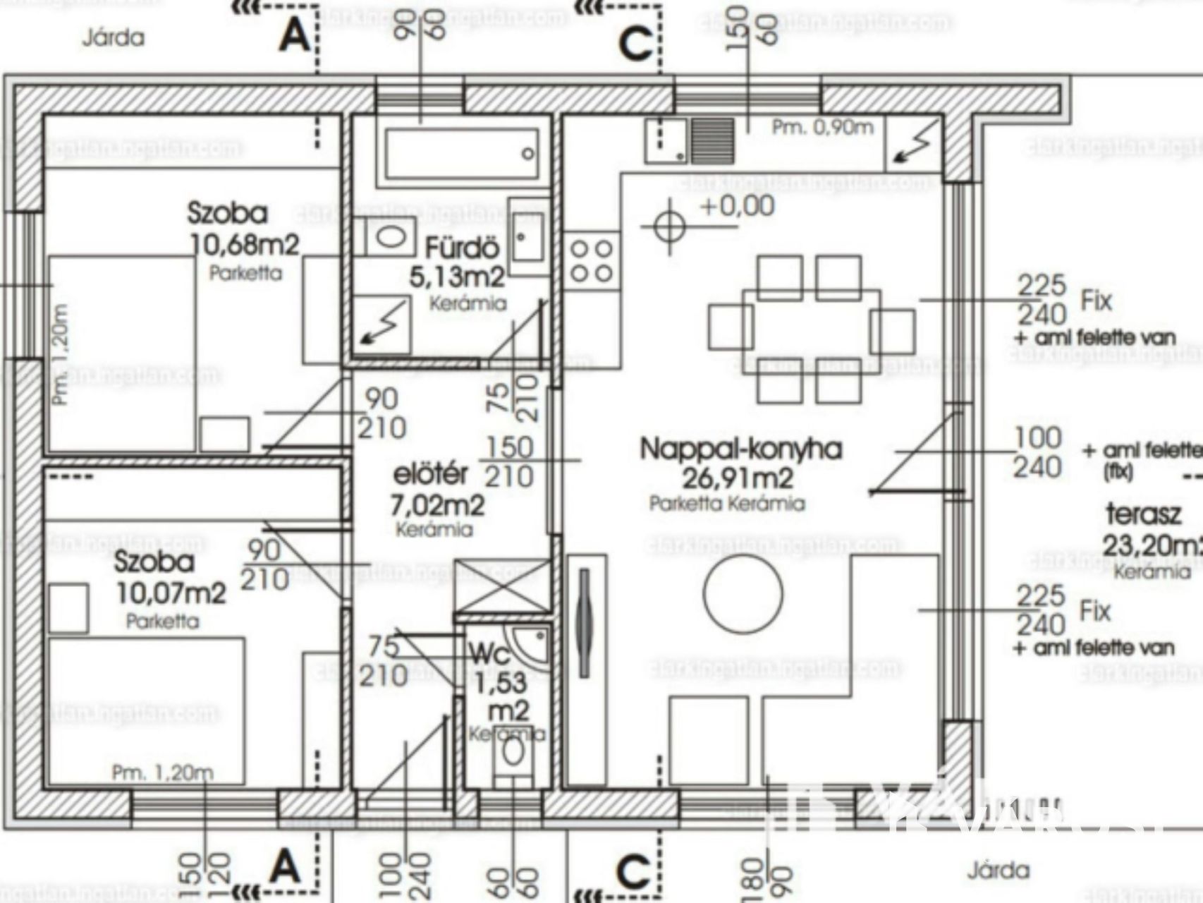 Az ingatlan elosztása kiváló, az alábbi helyiségek alkotják: amerikai konyhás nappali (teraszkapcsolattal), 2 hálószoba, 1 fürdőszoba és egy külön wc. Köszönhetően a prémium anyagok felhasználásának és a magas műszaki tartalomnak rendkívül alacsony a fenntartási költsége.