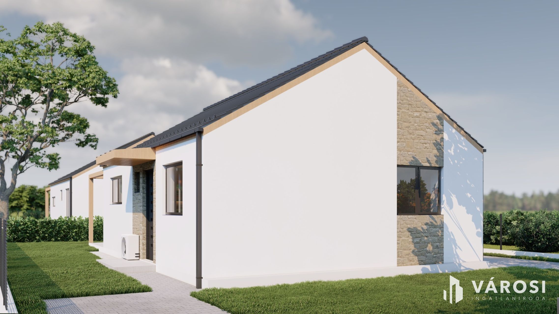 A képeken a látványtervek és az előző ütemben elkészült házak láthatóak referenciaként.