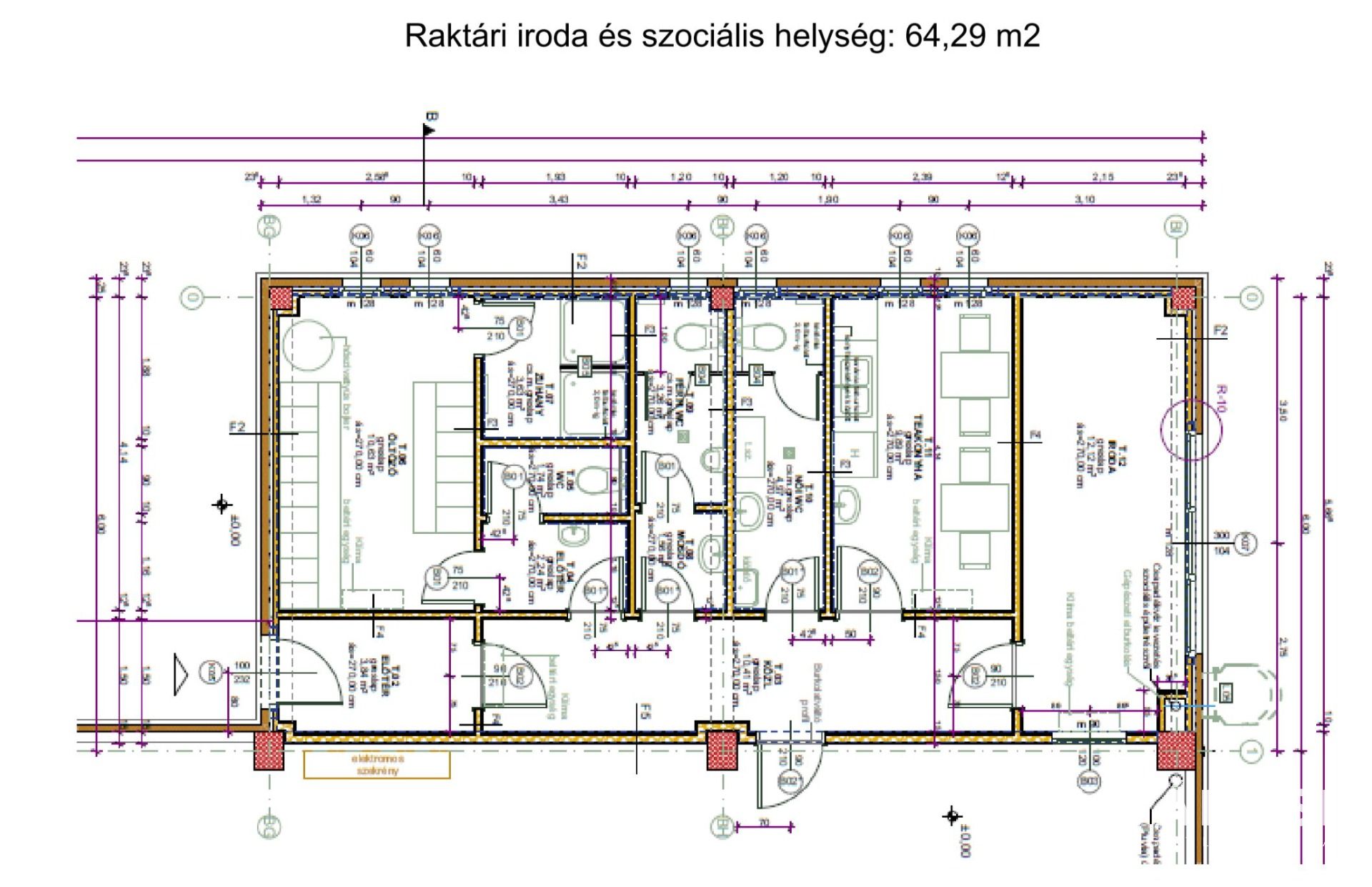Az ipari létesítmény földszintjén helyezkedik el a termelői rész, a raktárcsarnok, valamint az irodai és szociális helyiségek (öltöző, kézmosó, férfi és női WC, zuhanyzók és teakonyha).