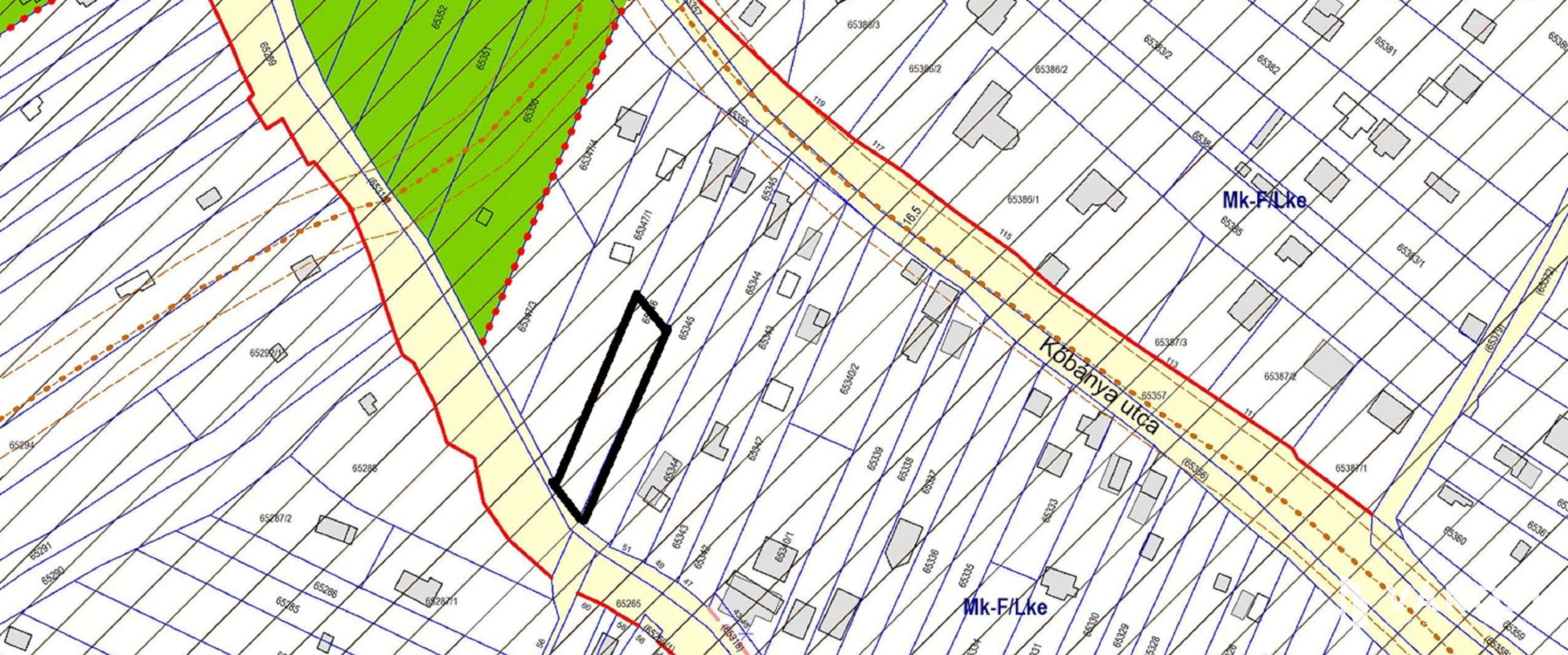 Egy nagyobb telek(1185nm) fele, melyet ügyvédi megosztási szerződéssel választottak szét.