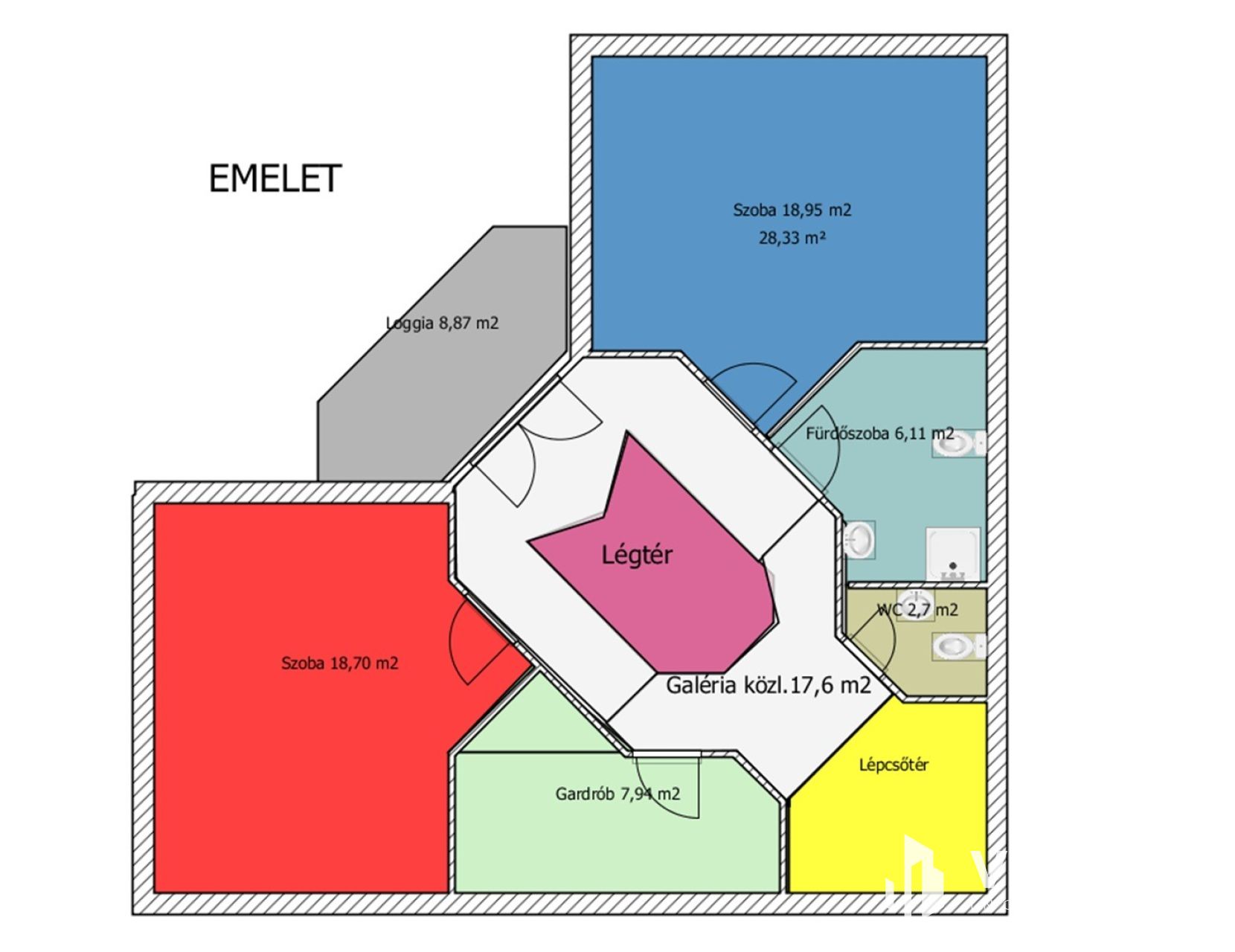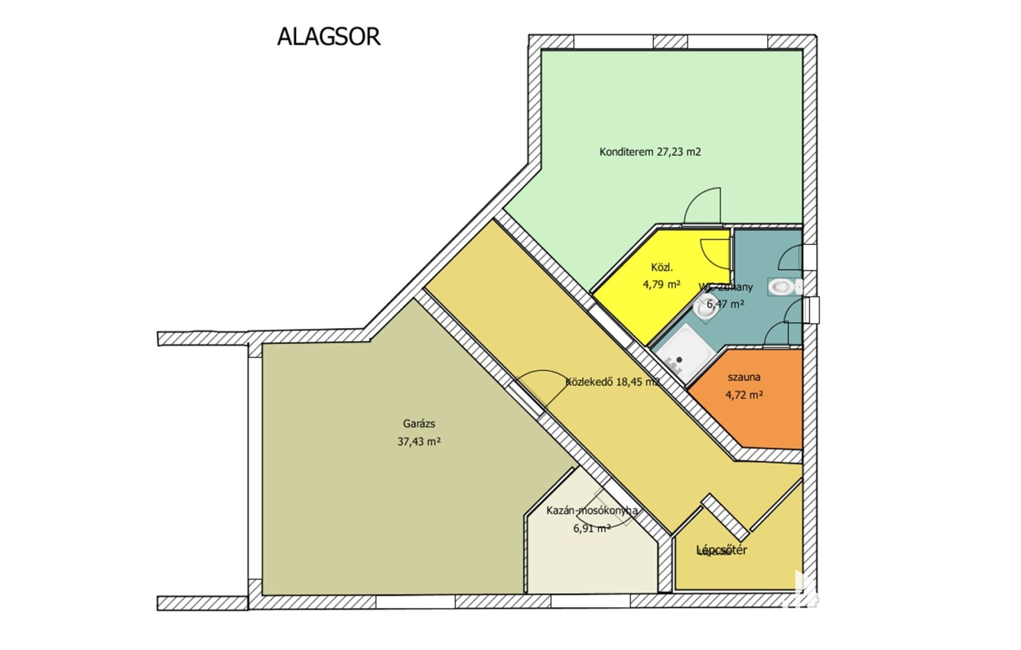 • háromszintes kialakítás